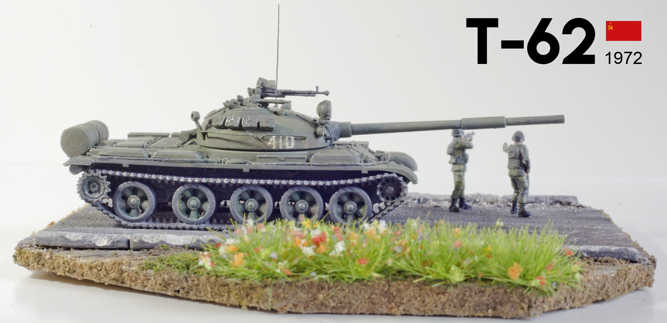 Высветление не видно, и смывки не хватает. Подставка выполнена на 5, цветы и воронка от гранаты отменно выполнены. Но композиция хромает, ощущение что танк прилетел и просто встал, чистый такой, ни тебе грязи, ни тебе плыли.