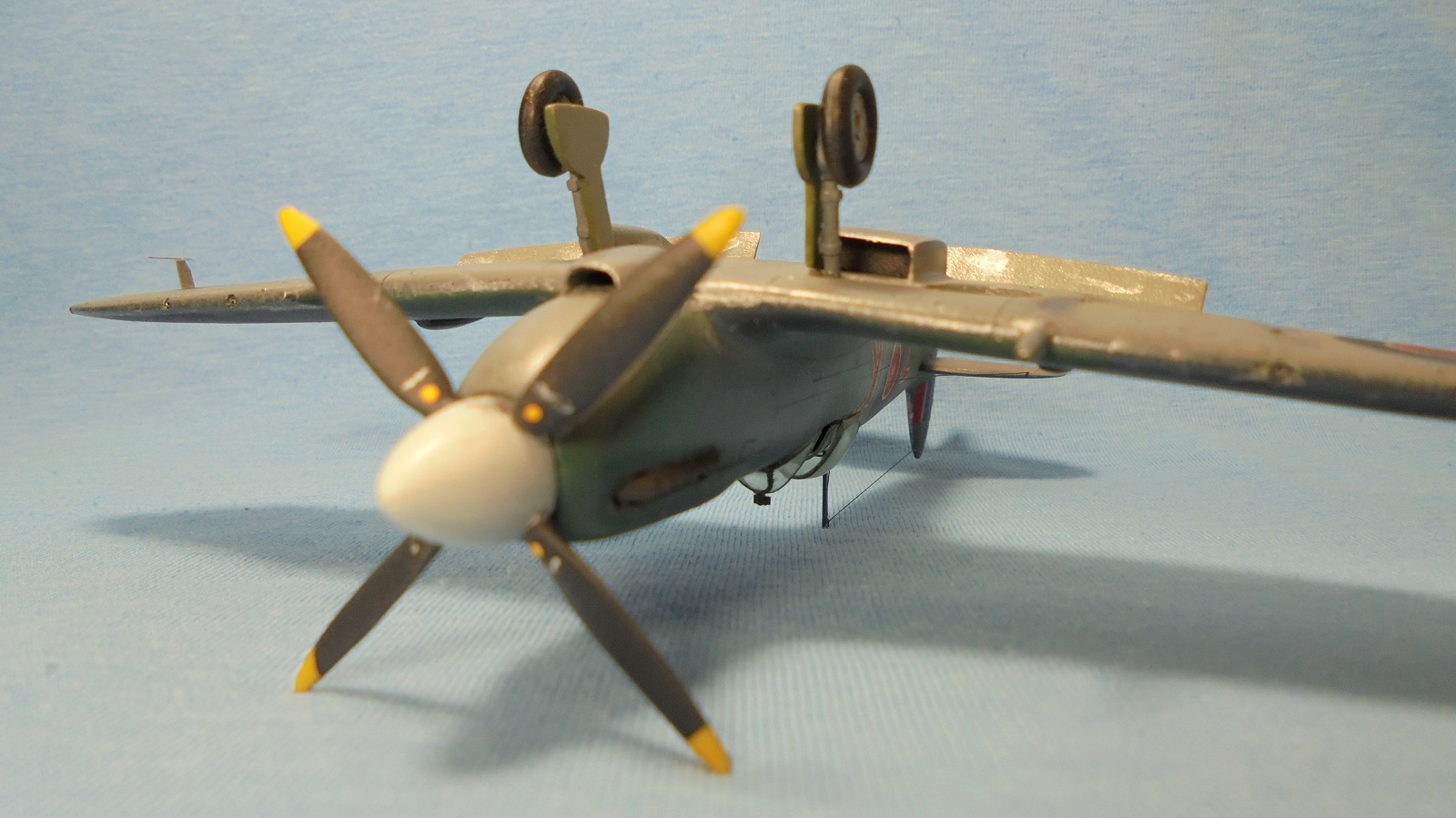 Если точнее, то это Seafire Mk.Ib. Если модель комплектовалась 4-лопастным винтом, то она минская, на что указывают и выхлопные патрубки. Кстати, на Сифайрах 1-й модификации патрубки были раннего типа, как на Спитах-пятерках, а такие появились только Сифайрах-тройках. Радиаторы, очевидно, переделаны. На минское происхождение указывают и ниши шасси, у донецкой единички их не было вообще, а консоль крыла была цельная. Да и всасывающий патрубок явно минский, на Сифайре-единичке он был другой. Учитывая время постройки и наличную тогда информацию, получилось у Вас вполне себе. Хотя, конечно, кое-чего и не хватает, в частности внешних накладок на фюзеляже и крюков для подцепки катапульты.