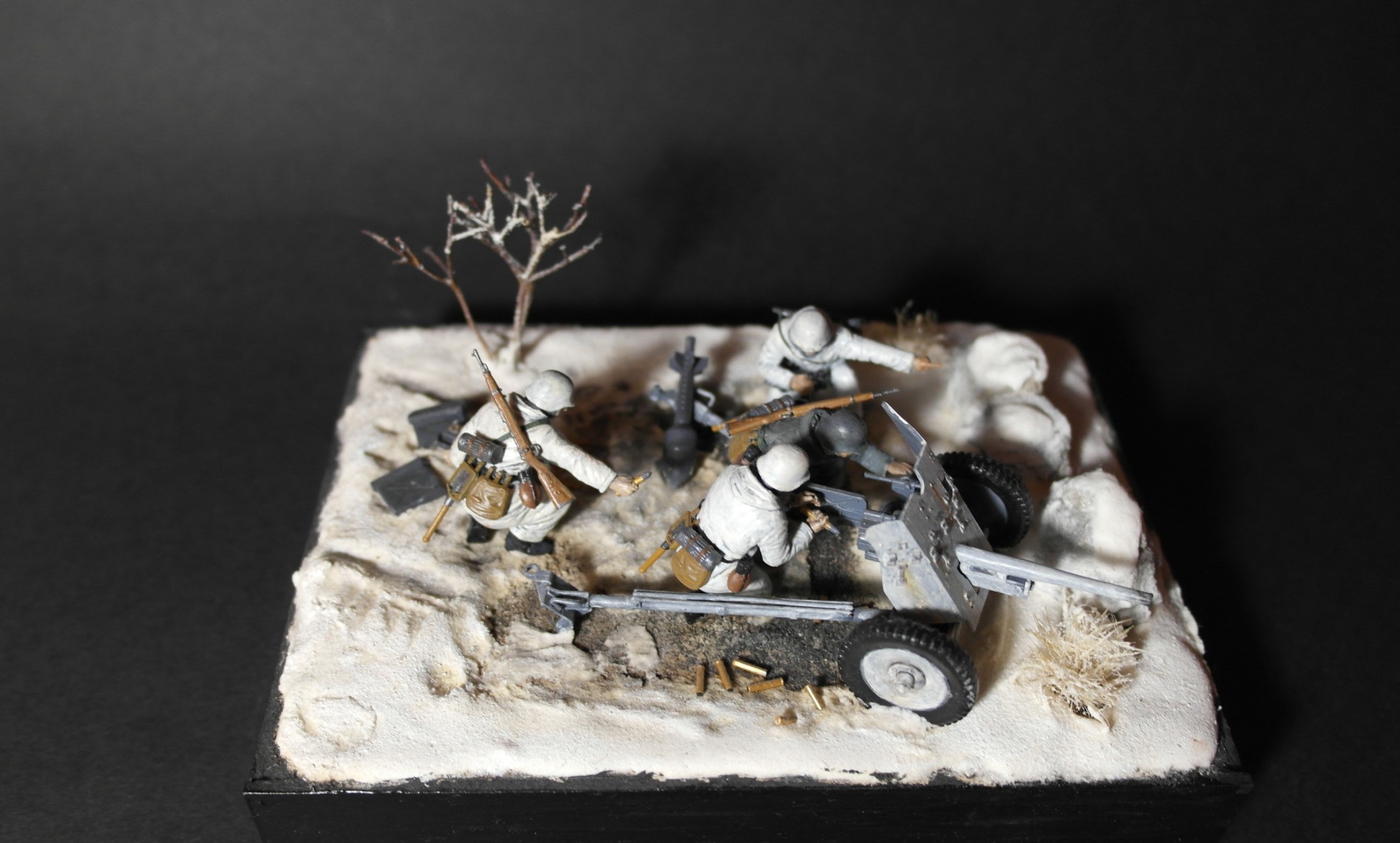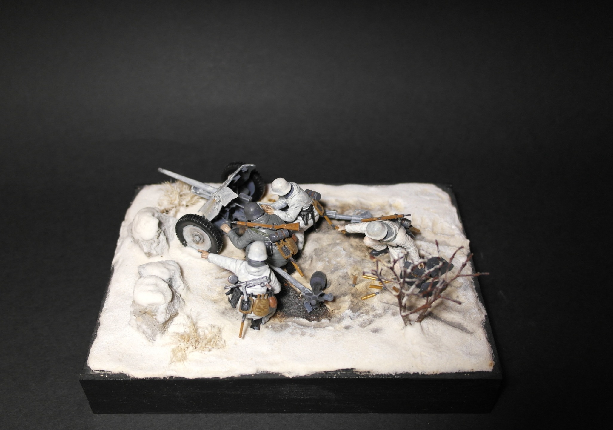 Доброго времени суток. Набор от звезды ПАК-36. Качество набора понравилось. Основание гипс. Снег- сода с ПВА, трава - сантехнический лен. Куст - кисть рябины. Краска - звезда.