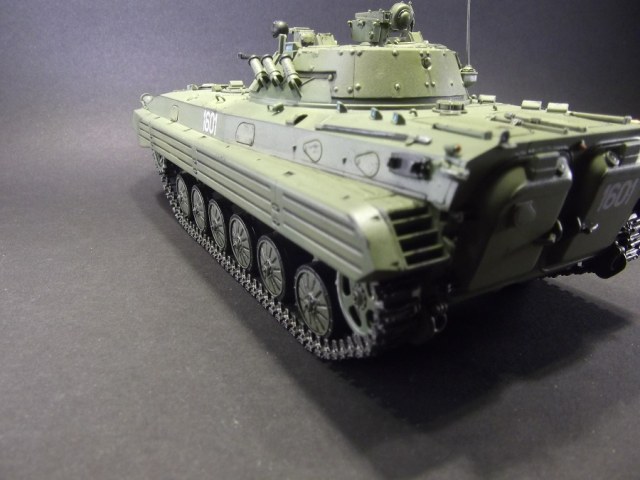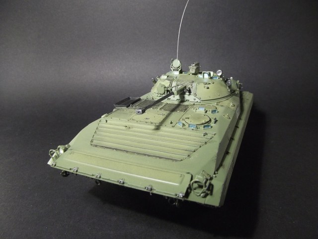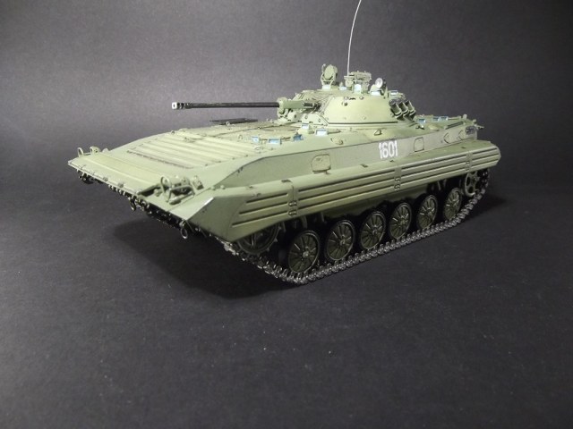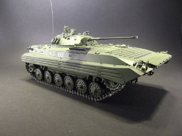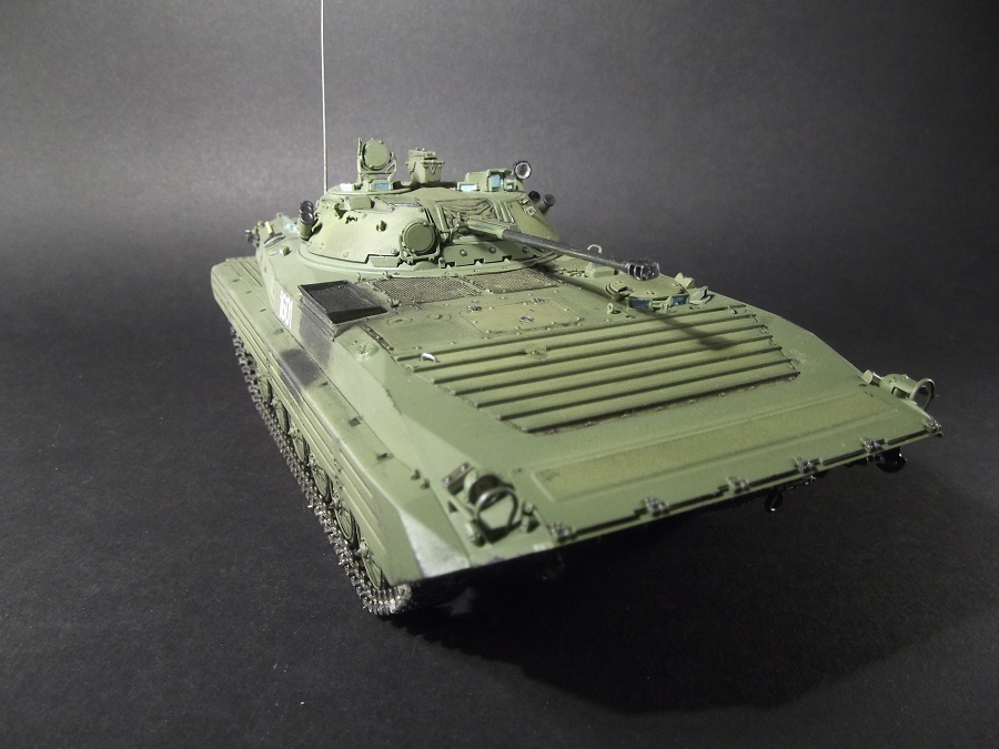 Представляю модель БМП- 2 , от фирмы Trumpeter, в 35-ом масштабе. Знакомое хорошеекачество деталей . При чем огромное количество мелких. Добавил антенну, заменил фары. Гусеницы сразу выкинул, так как уже давно прикупил фриуловские( о чем вскоре пожалел). Достал траки, но тут ждала засада. Обычно в местах соеденения присутствуют отверстия, в этот раз их не было. Пару вечеров сборки гесениц превратились в неделю мук.
