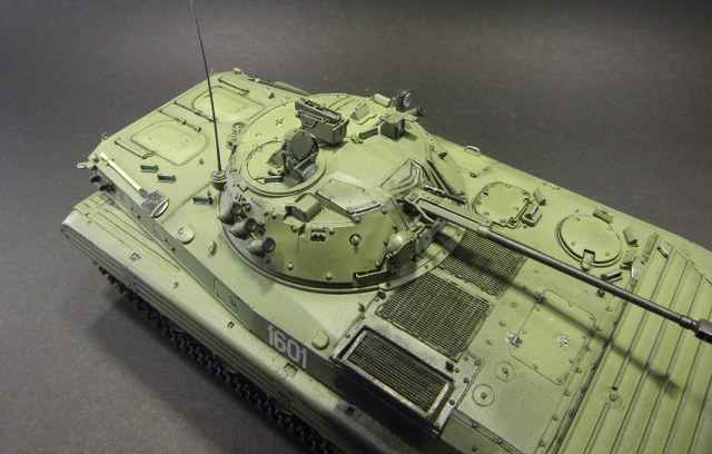 Доброй ночи, Владимир. Посмотрел Вашу работу и появилось двоякое ощущение; первое добавление (доработки) во многом - те же гусеницы, антенна... но /теперь к минусам/ - у той же антенны нет антенного ввода, нет пластиковой секции, да и сама она "кривая". Проводки нет, триплексы "голубые", ствол (его ДТ) под углом. Покрашено простенько, без изысков, "дежурные" пятна потёртостей бОльшего масштаба, чем возможно - не придают реалистичности. На третьем фото "выхлоп" также смотрится т.с. неестественно. Да, и по фотографиям: нет крупных планов - нельзя оценить уровень отработки и покраски. Все виды сверху-сбоку, разглядеть ходовую или гусянку (над которой Вы работали) - нет возможности. При Вашем опыте работа более чем простенькая.Жаль.