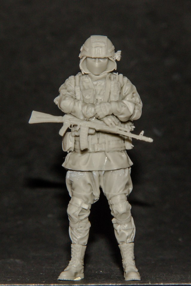 Фигурка представляет собой стоящего бойца Вооружённых сил России, одетого в элементы современной экипировки «Ратник».