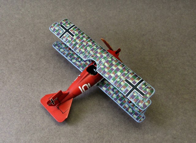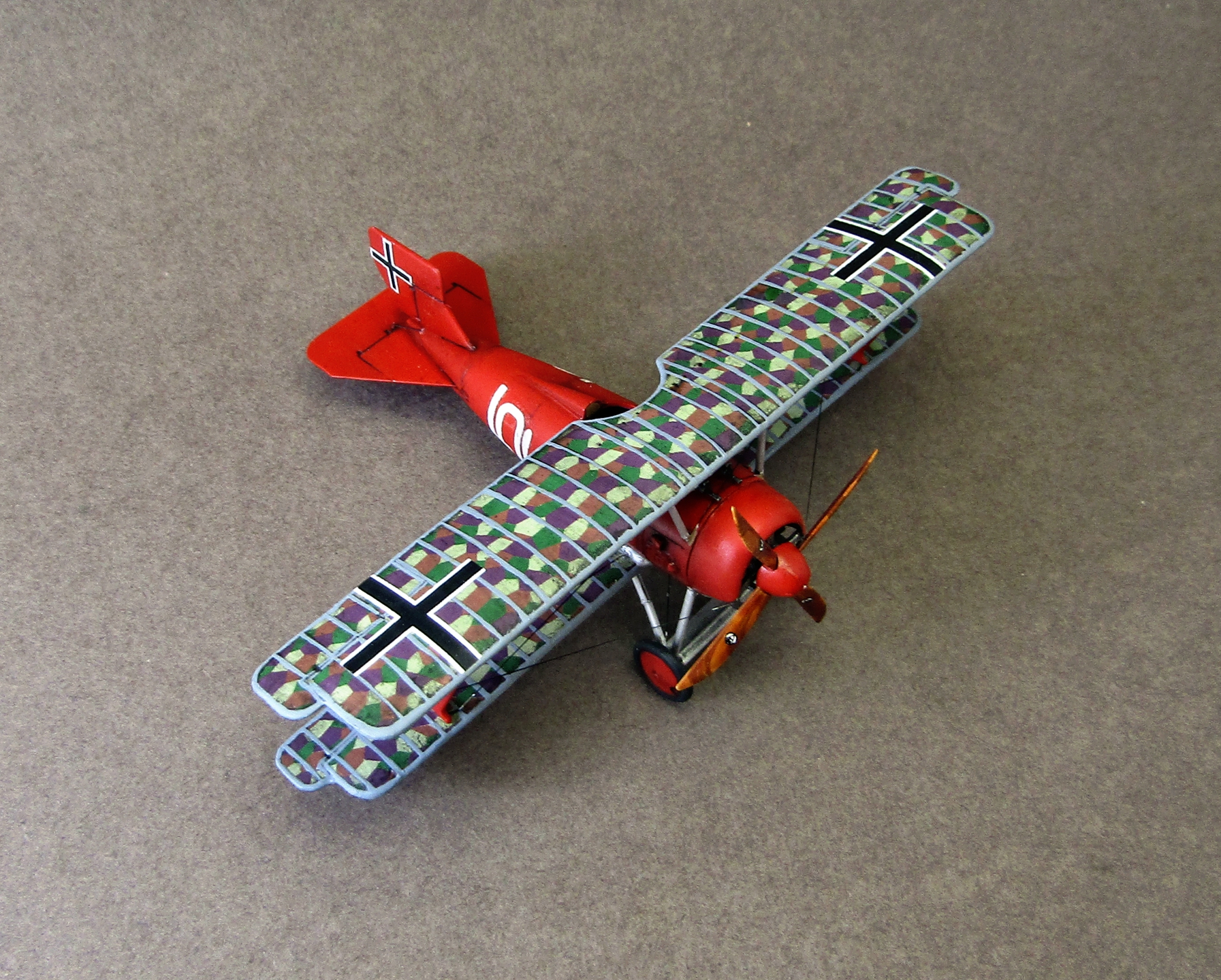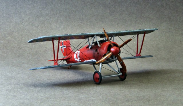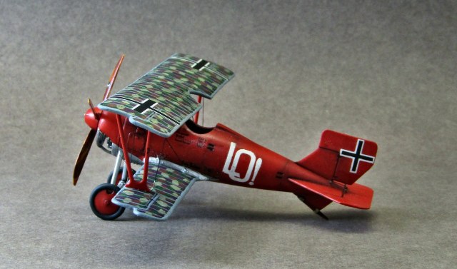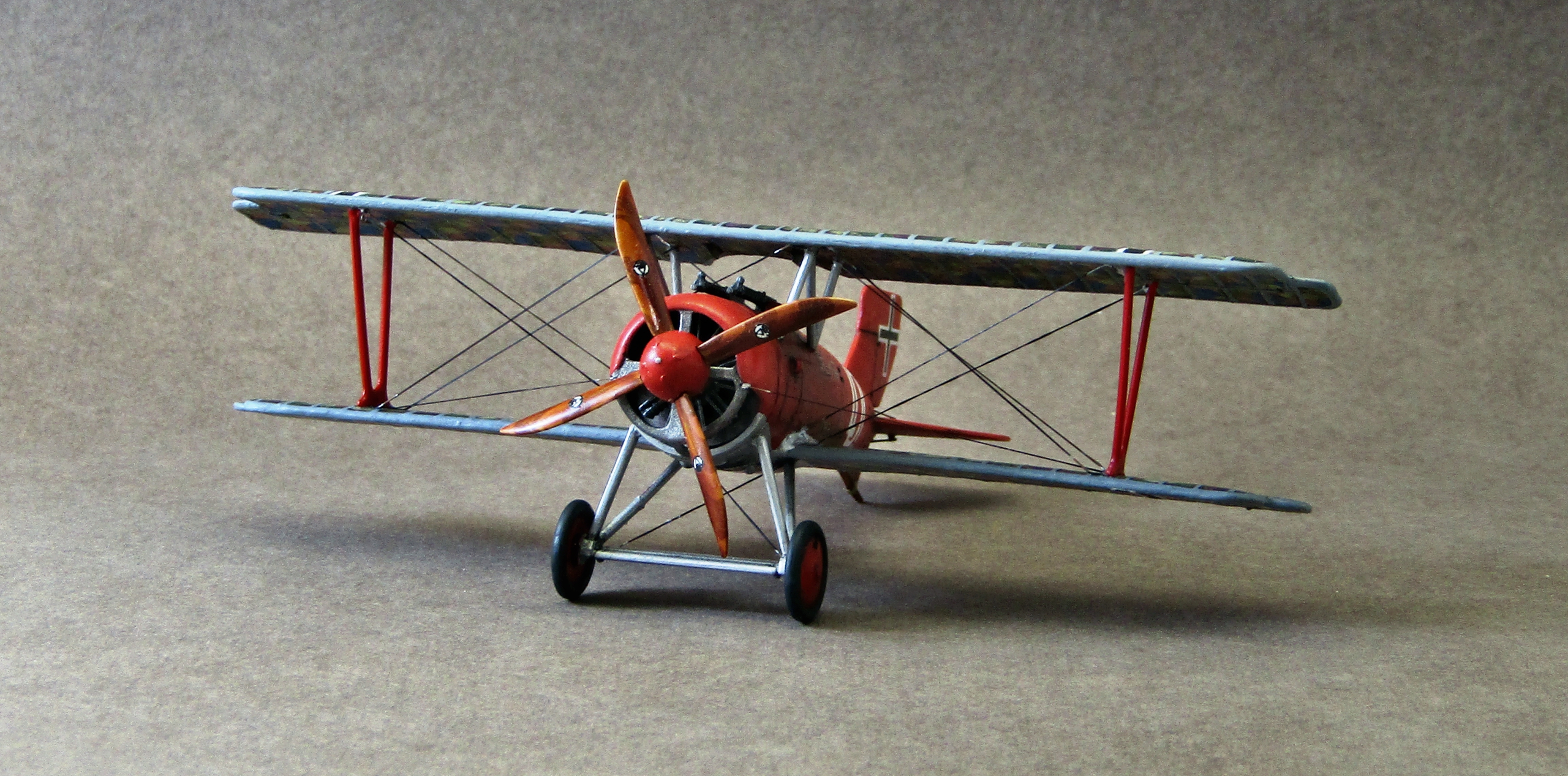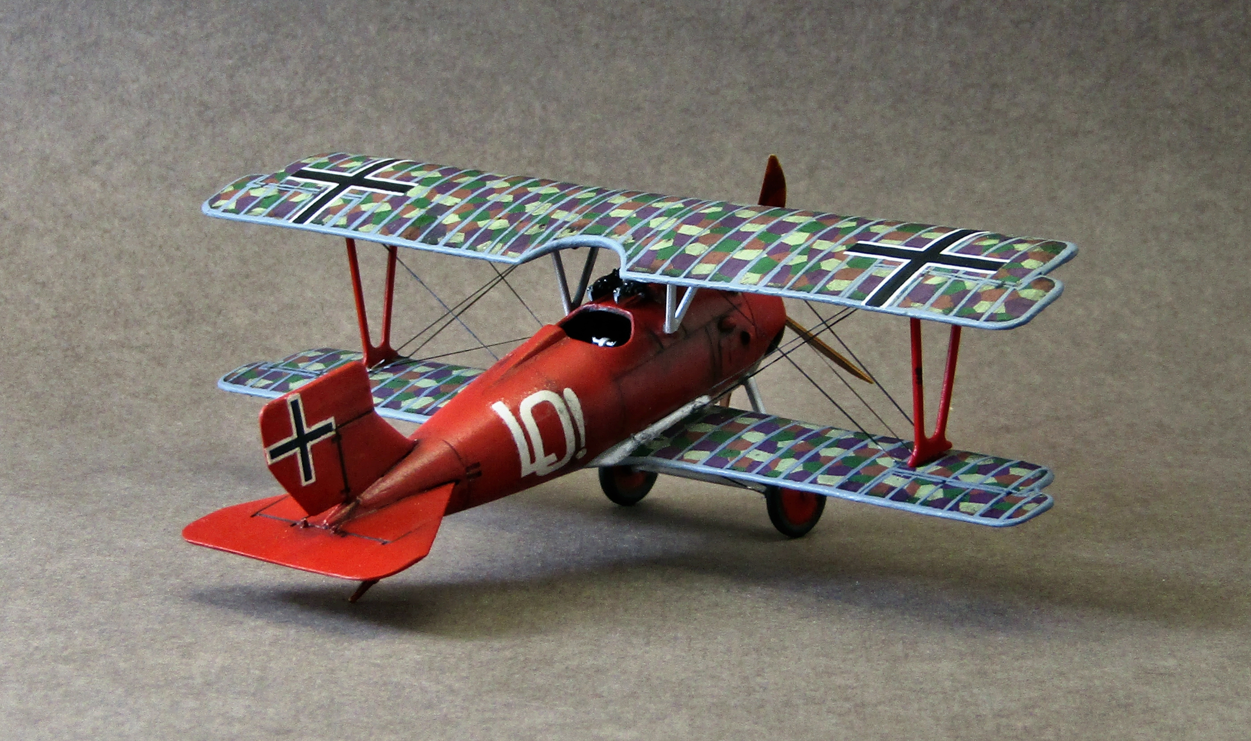 Приветствую коллеги! Представляю Вашему вниманию свою первую работу над бипланом времён Первой мировой войны. Набор неожиданно меня очень порадовал своей детализацией (при цене в 250 р.). Собирал с небольшими доработками: добавлены ремни на сидение лётчика и расчалки из эластомерной нити. Грунтовал серой Ганзой 1500, красил красным водным акрилом от АКАН. Декали в наборе, мягко говоря, не очень - на поверхность не привариваются, укреплял эмалевым лаком от Ревелл. Поверх лозенга нанёс полоски под шнуровкой (вроде так называется, а может кто поправит). Фактуру древесины имитировал темперой, сверху покрыл лаком для дерева Dulux. В процессе покраски смывал чёрной Тамией. Финишное покрытие - полуглянцевый лак от Тамии. Вроде всё, что мог рассказать Вам по стройке данной букашки описал, приятного просмотра коллеги...