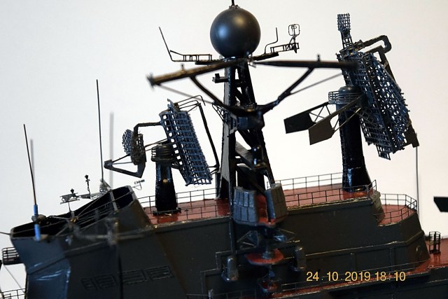 Двойственное ощущение от модели. Восторг от объёма проделанной работы,использованных технологий , скорости постройки. Но , честно говоря, не хватает чистоты обработки деталей и сборки, что сильно снижает впечатление от модели. Покраска выделила все наплывы клея, недоделки и другие огрехи первичной обработки. Соответствие матчасти не рассматриваю, поскольку автор сам произнёс:- "Если бы всё вооружение...". Если попробовать применить оценку по правилам НАВИГА, то 76-78 баллов ( диплом участника). По сути это проходной балл в галерею (по правилам Каропка.ру).