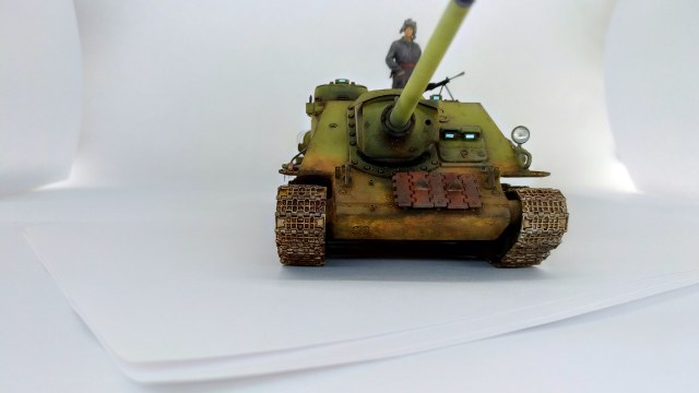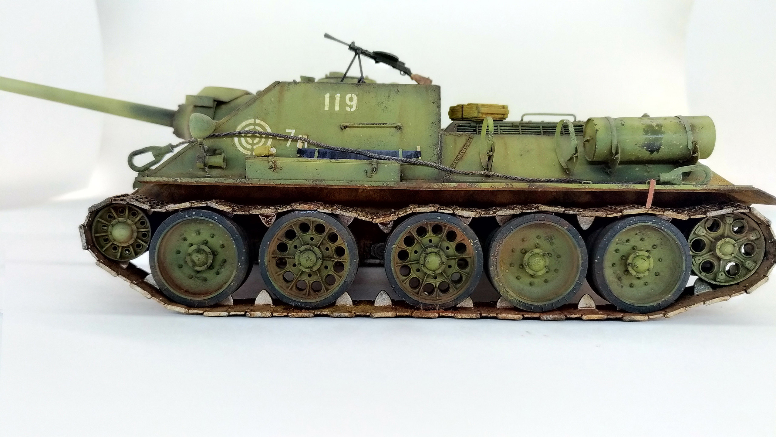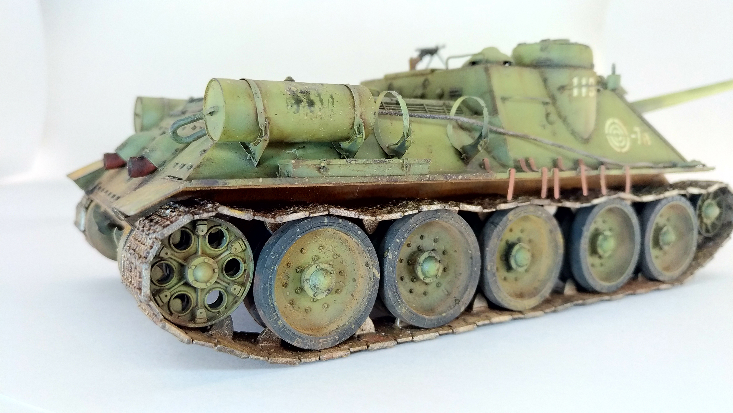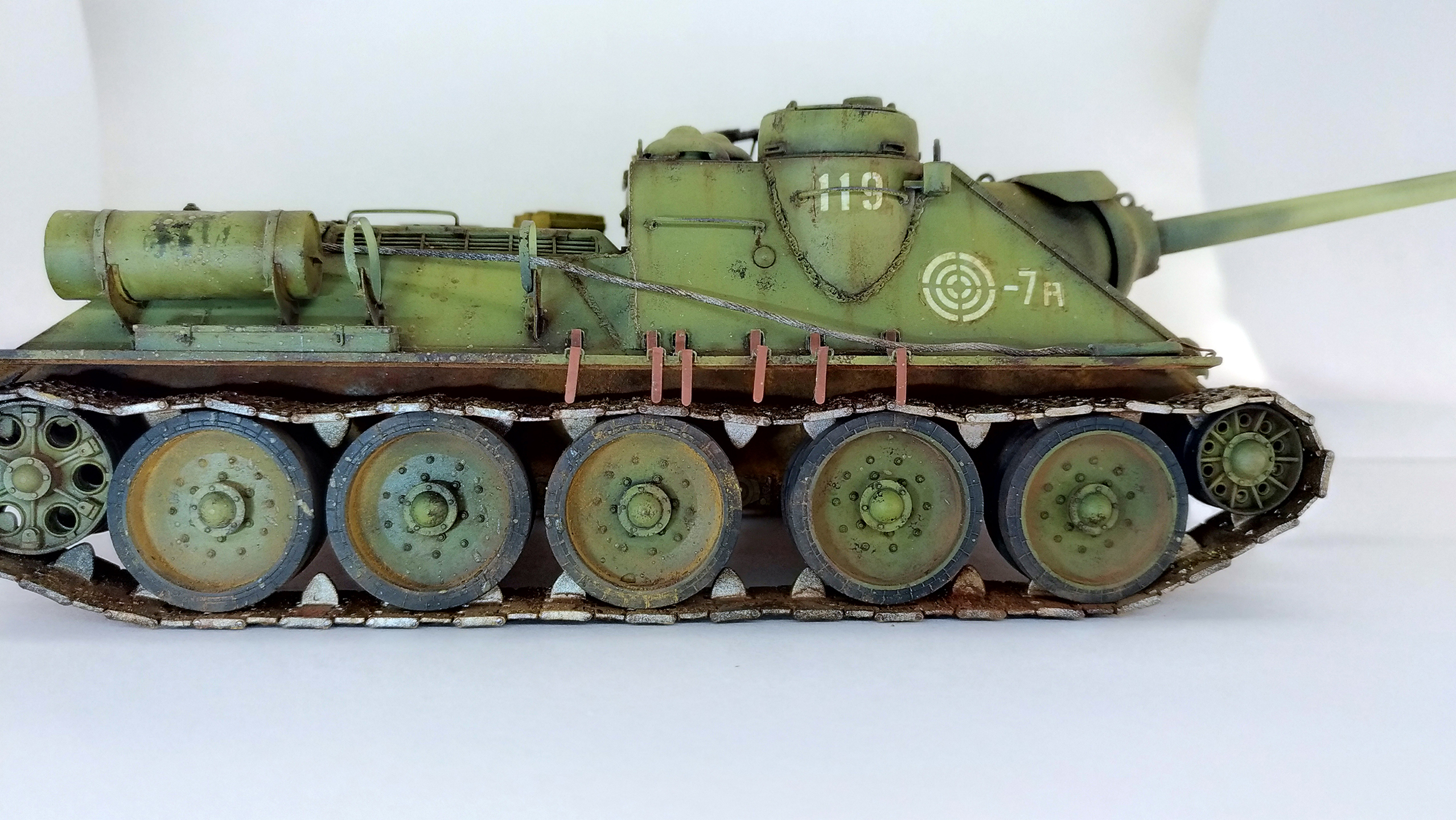 В постройке использовался набор Dragona, фототравление Aber,ствол металлический, комбашенка комплект зип, фара эльф, фигура от миниарта, из какого набора не упомню уже. У сушки при покупке были дефектные катки ( брак литья), пришлось их заменить на катки от т-34/85