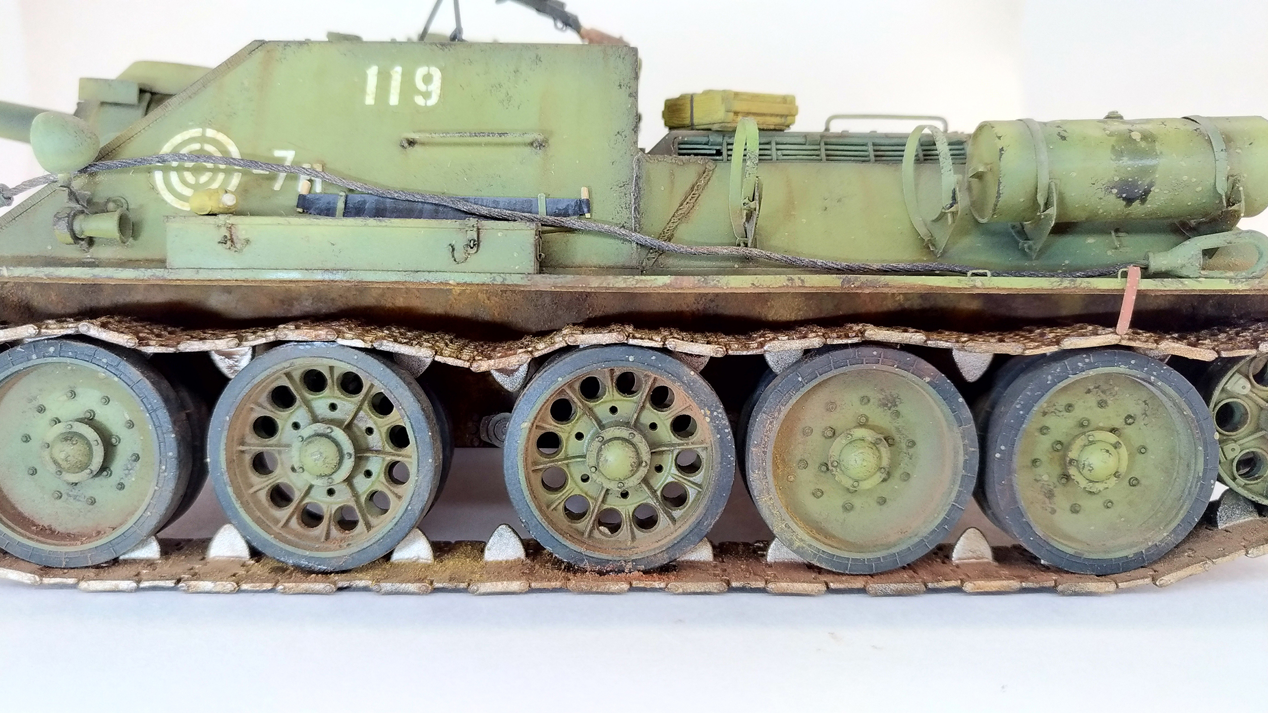 Ремешки исправлю! Траки использовал из набора, перед покраской склеил их и не доглядел, что легли не очень. Попробую отодрать ленивец и немного его сместить.