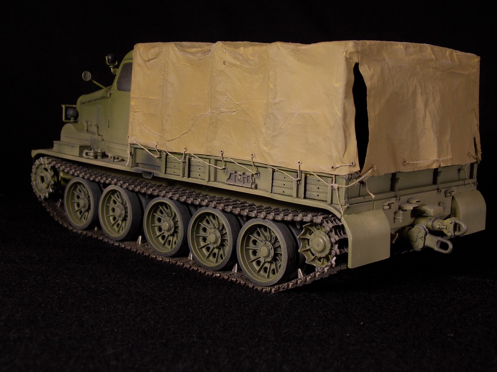Классно получился тягач, по-военному строгий и собранный. Очень понравился тент, хорошо выглядит.