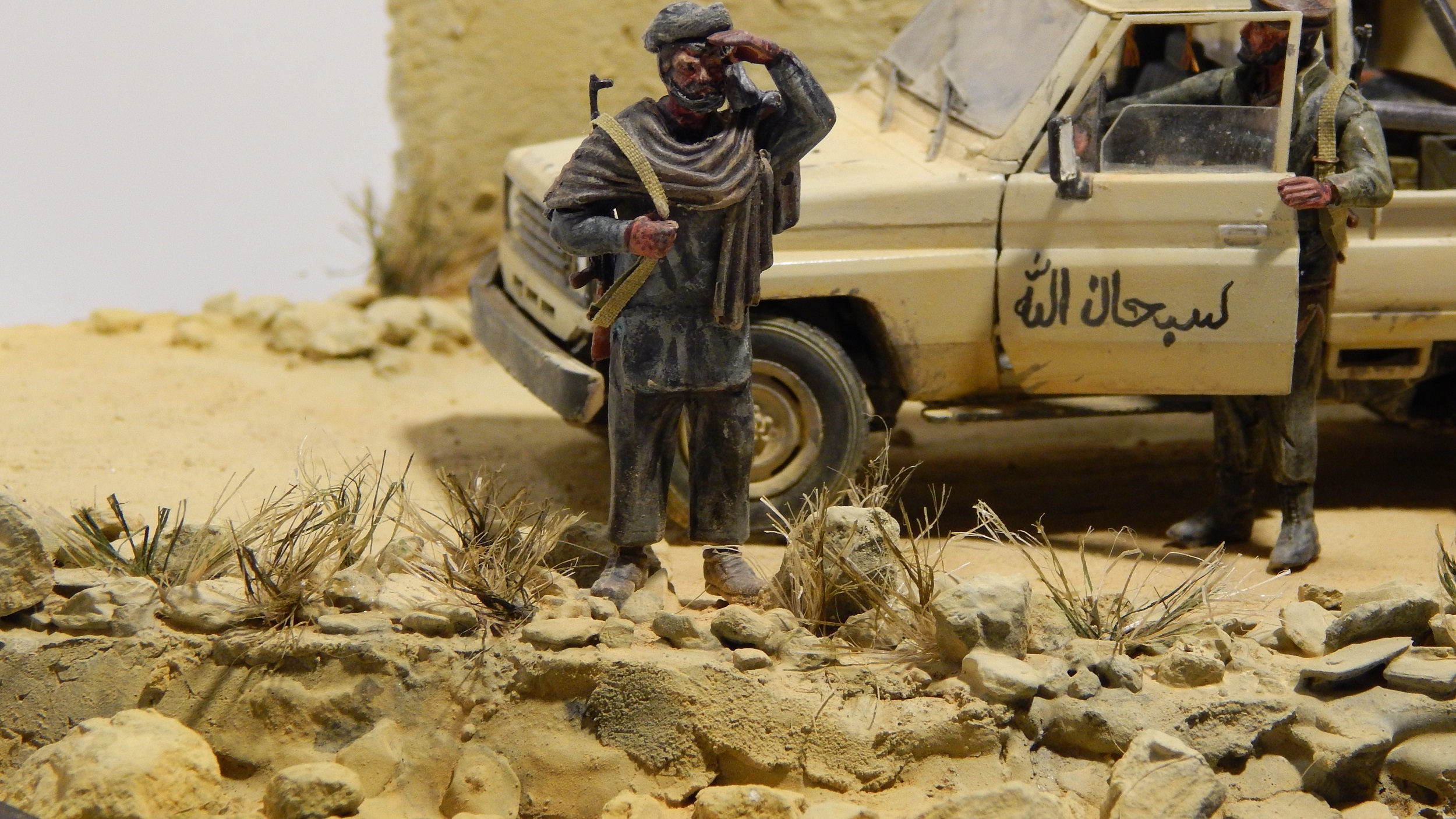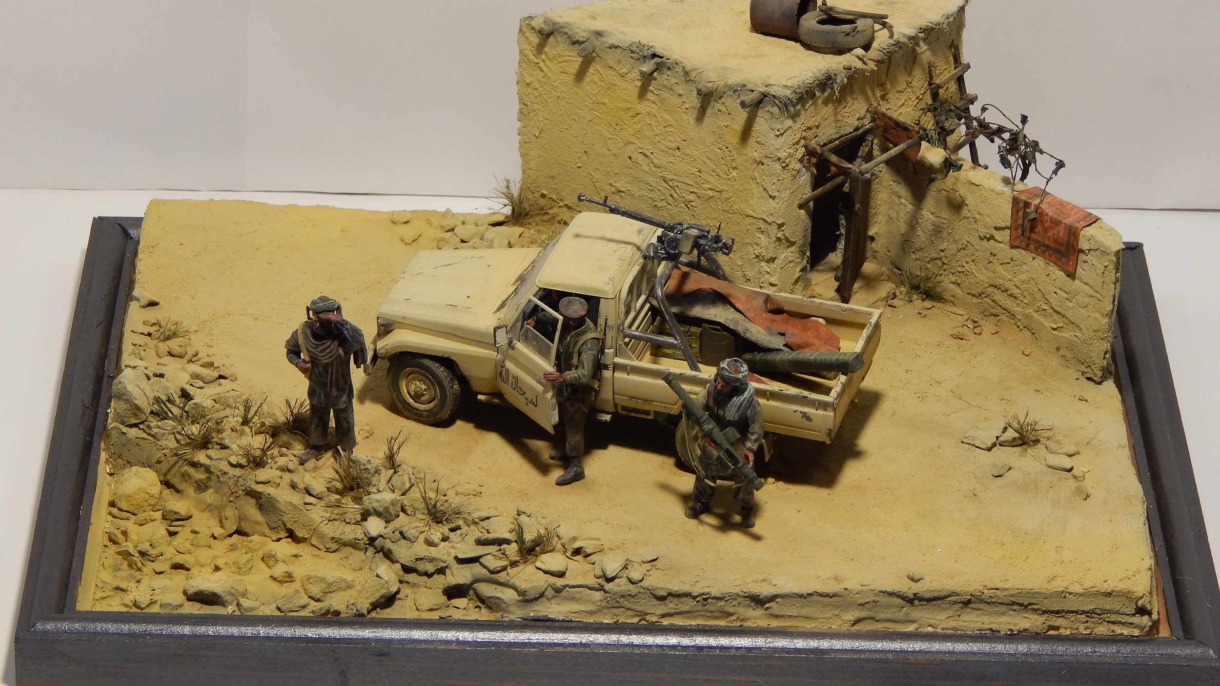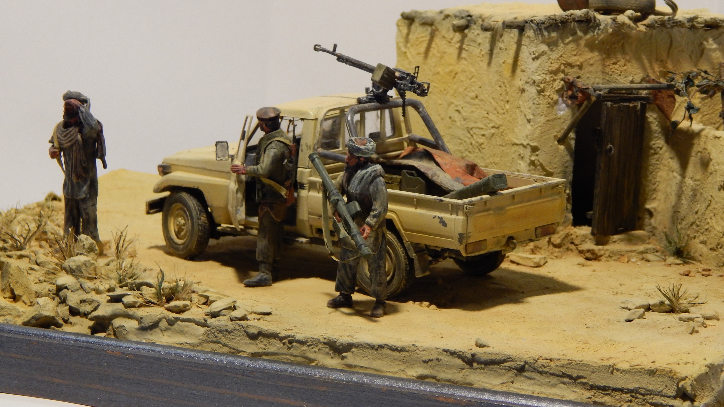 Очень понравился в сборке автомобиль.. Все встало как родное. Ну ICMовских древних душманов описывать тоже смысла не вижу. Дрова редкостные. Красилось все пацификом. Смывки и фильтры самодельные из масла. Подставка штукатурка, Дувал пенопласт. Ваши табуретки.))