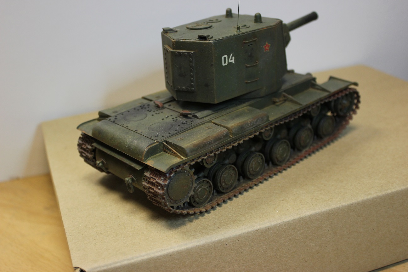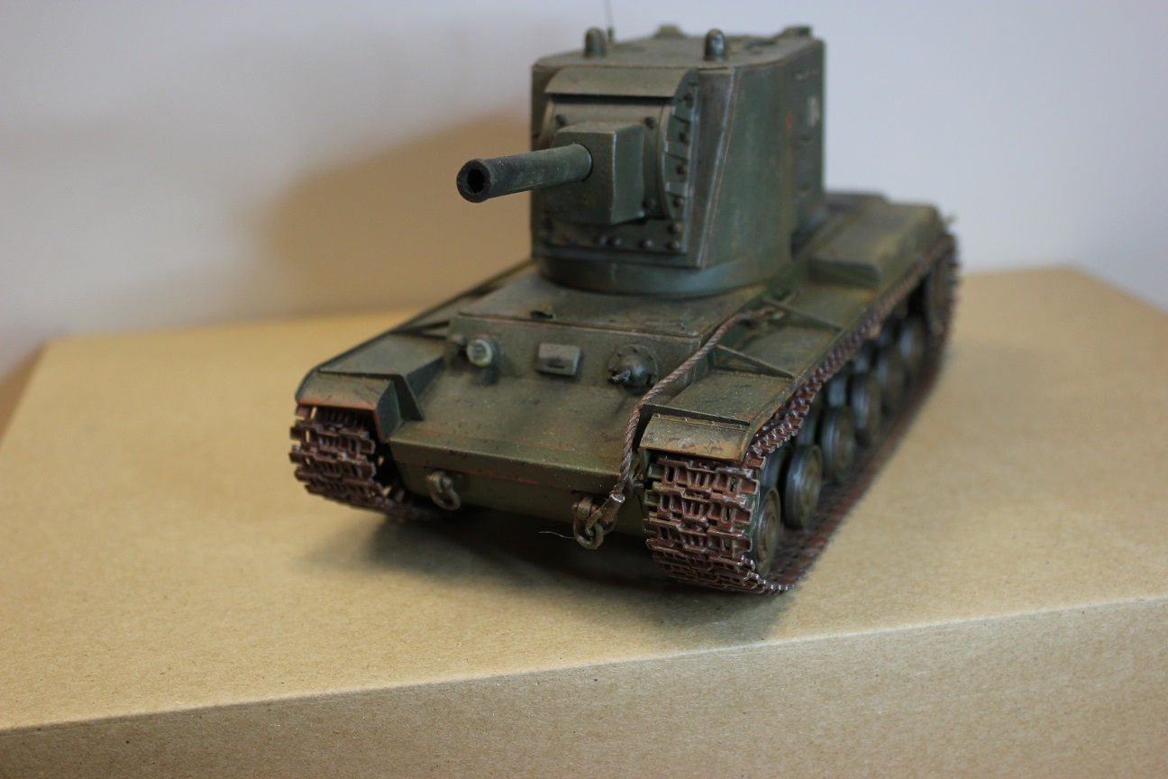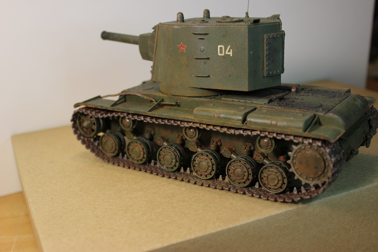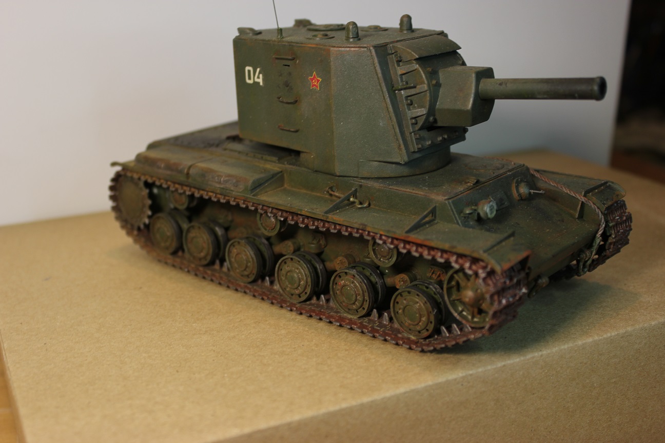 Этот набор непростой в сборке.Ванна не стыкуется с верхом.В наборе много лишних деталей,которые относятся к сборке КВ-1.А вот одного литника с некоторыми деталями для КВ-2 нет.Пришлось искать замену деталей.Гусеницы из набора не ставил.Купил наборные траки для танка КВ от Восточного Экспресса.Пришлось помучиться при сборке.Так что не ругайте за гусеницы