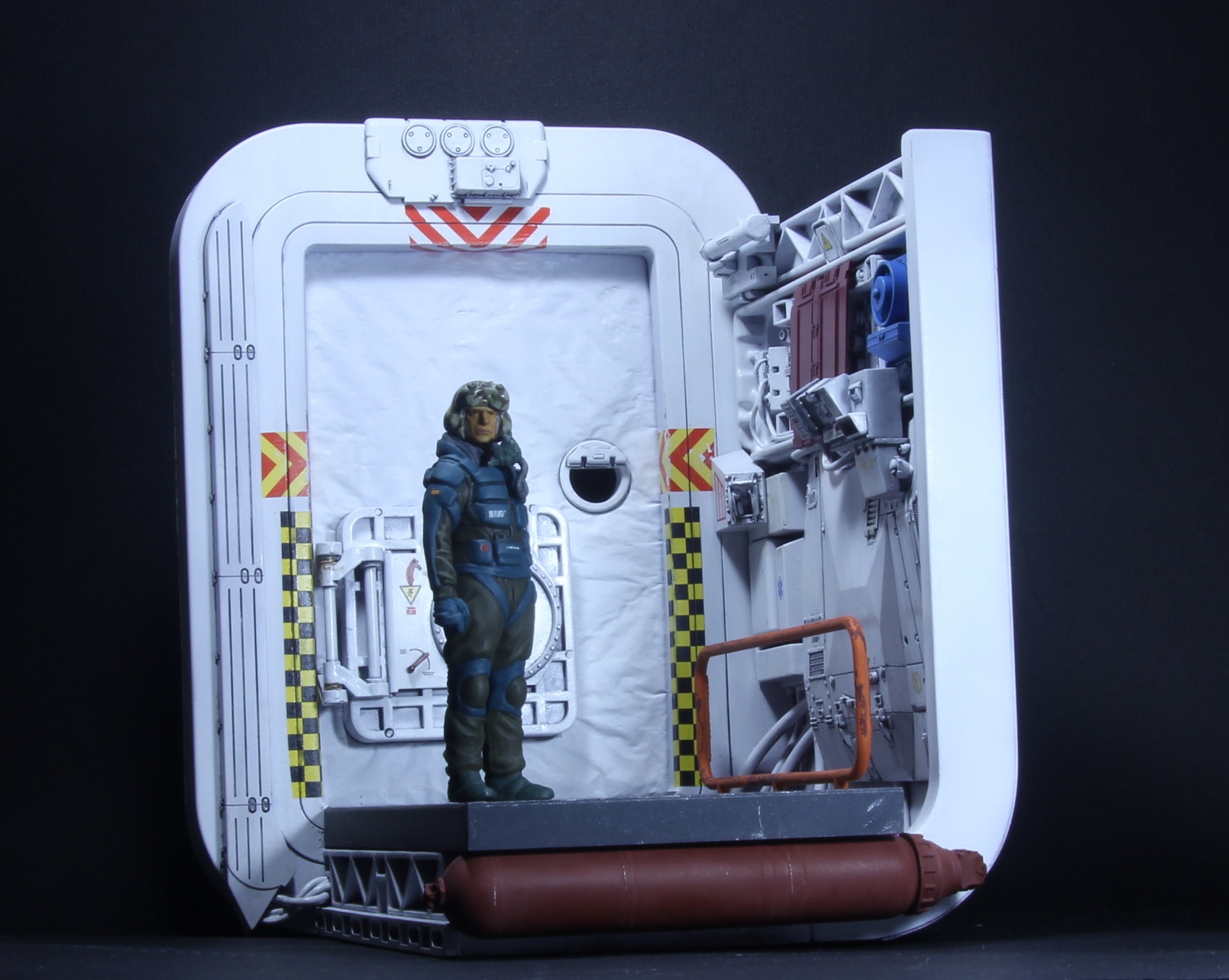 Фигура пилота и сам Бронескафандр 1:20 - Хасегава, соответственно. Позднее, по готовности, выложу их отдельной моделью. Тут они только для антуража. Зажигалка - для понимания размера, соответственно.