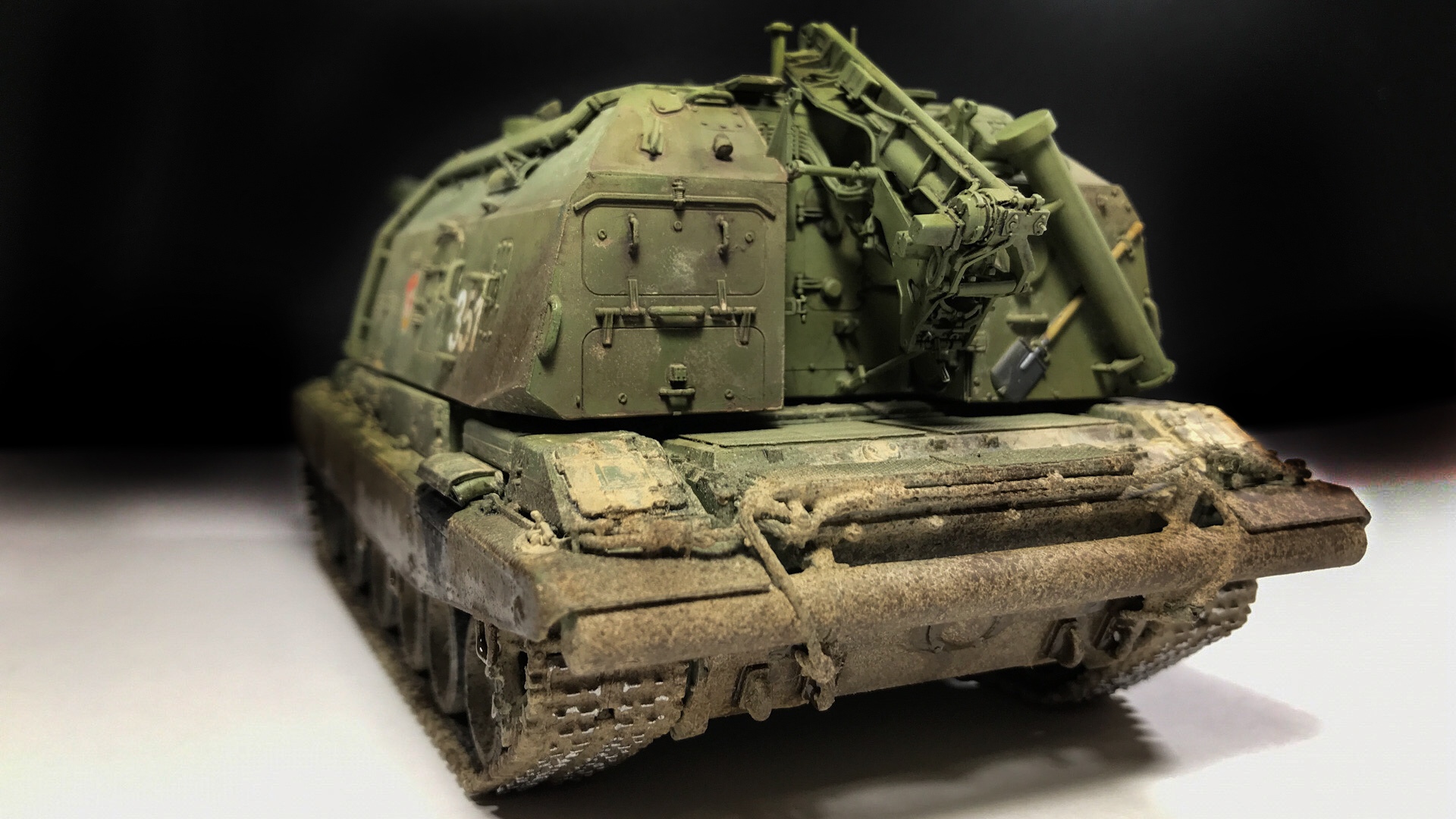 Что произошло с задней частью башни, почему борт сау более чистый чем башня? Ни и ходовую с комками грязи закидали что катки что гусеницы в местах их соприкосновения. Про дульник написали. В остальном все понравилось.
