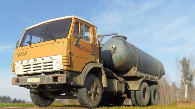 Еще одна интереснейшая новинка от AVD Models , Вакуумная машина КО-505 ( Камаз 53213) или попросту откачка).Такие машины встречаются повсеместно, у нас в иркутске их очень много, презжают в основном на аварии связанные с водоканалом. В основном они все сделаны еще в СССР, и состояние у них не отличное. Рама и кабина выполнены из металла, остальное пластик. Полосы -стяжки бочек и дворники металл. Детализация самой "бочки" мне очень понравилась, от себя добавил кой каких проводков, ручек, в общем по мелочам. Стыковка на 5, а сборка не смотря что деталей достаточно много-очень простая.Прикольно что в наборе попались номера наши иркутские прям по заказу). Окрашена модель эмалью мотип, тамия. Колонка и колодец- смоляные дополнения от AVD Models. Приятного просмотра!