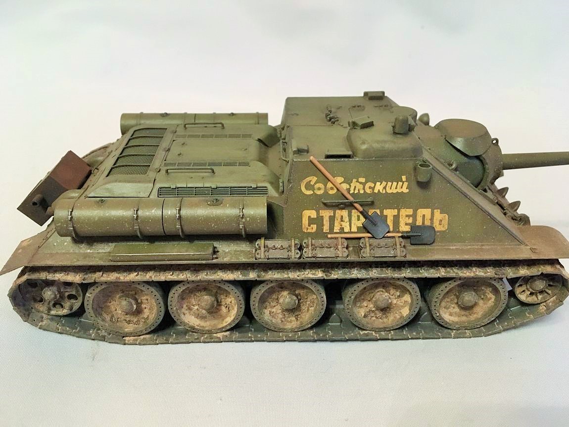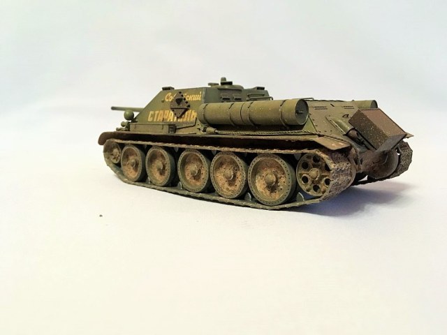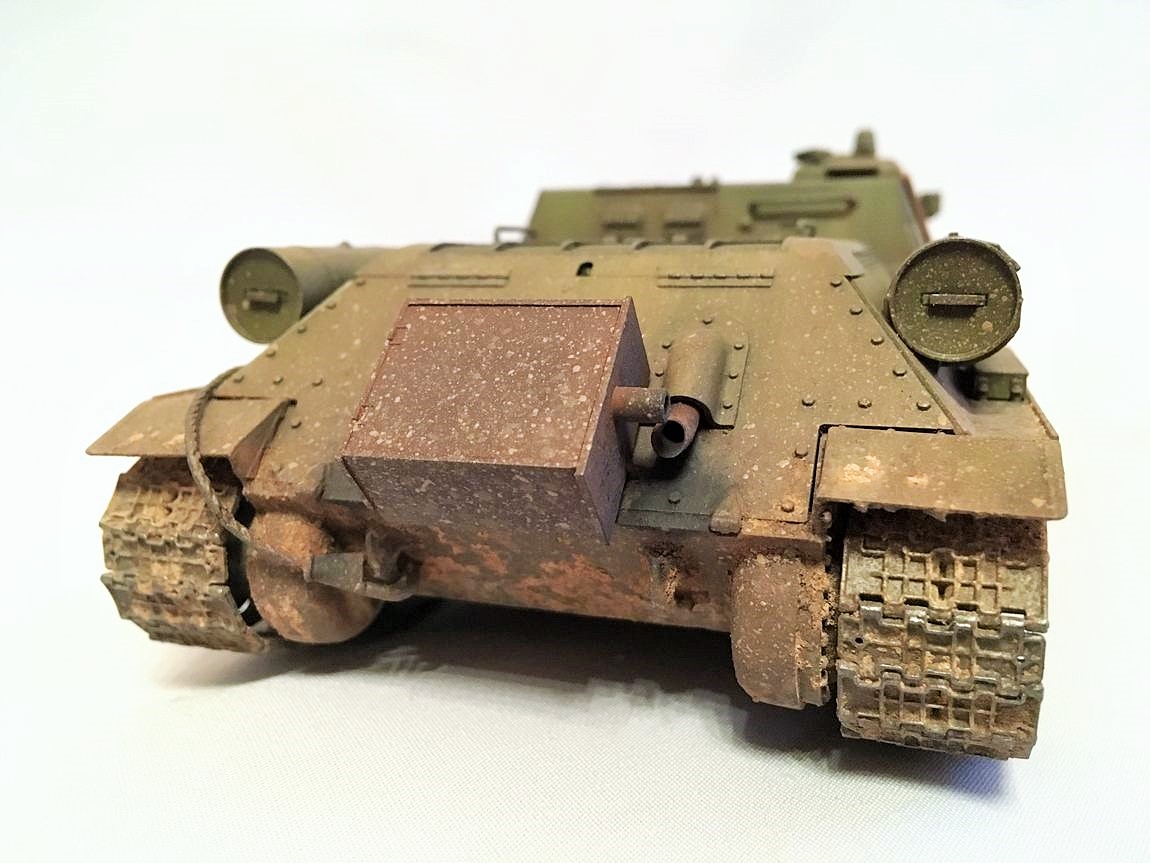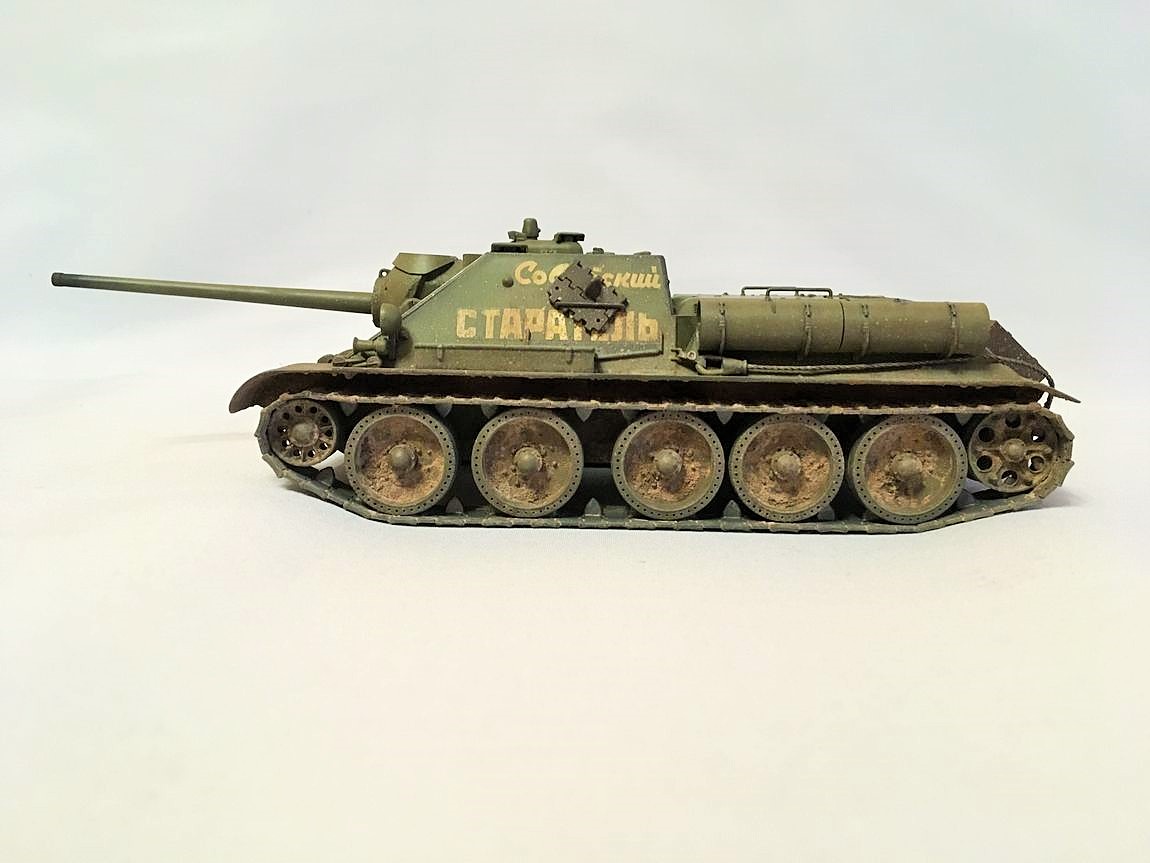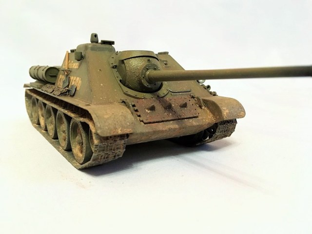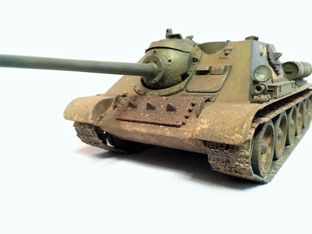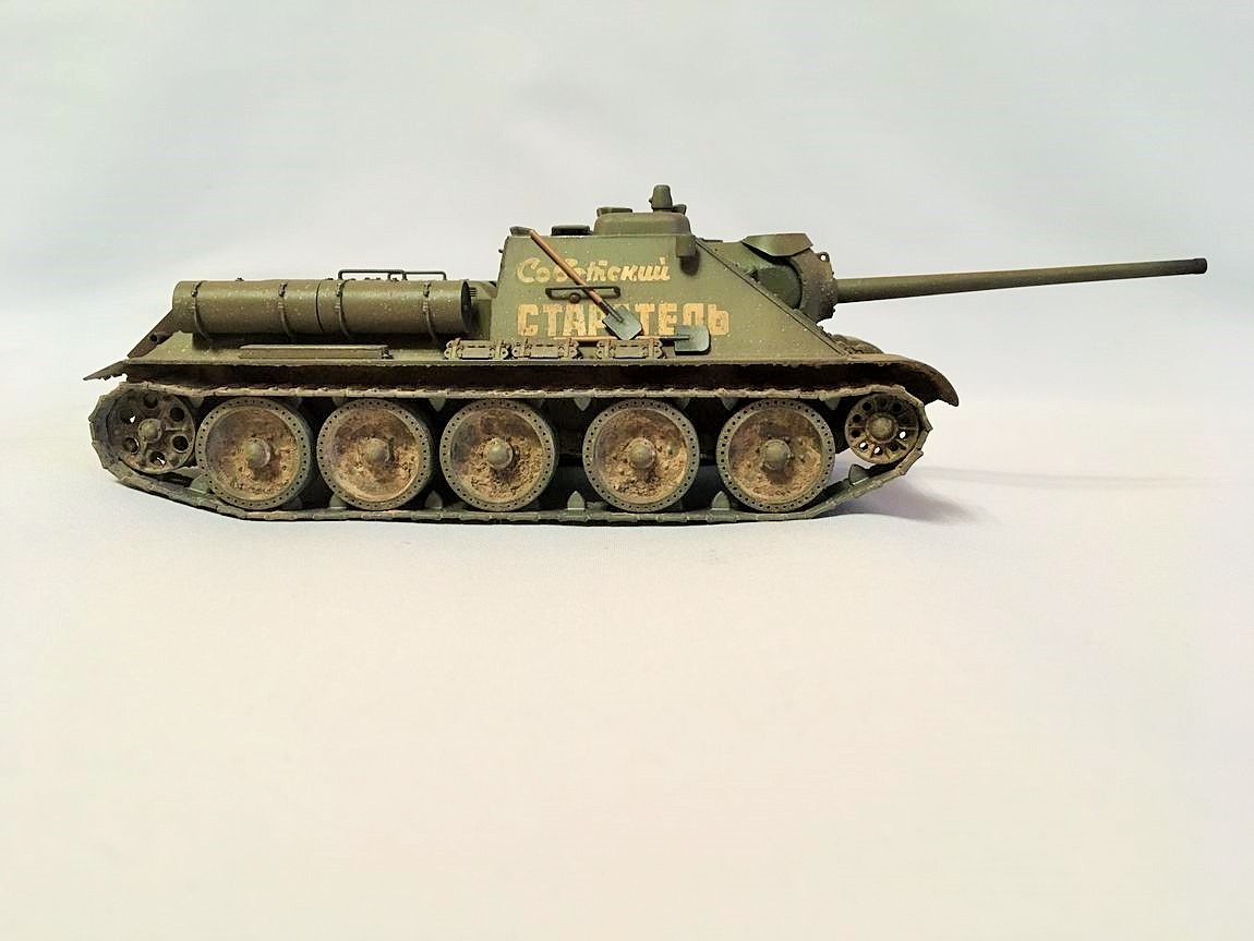 Здравствуйте уважаемые моделисты. Хочу представить вам свою модель су-85.Модель собиралась из коробки. Красил красками mr hobby и tamiya. После покраски нанес смывку и масляные точки. Впервые попробовал нанести погодные эффекты с помощью химии ammo mig и zip maket. В матчасть не лез-основной задачей было попробовать на модели везеринг. Хотелось бы услышать от вас советы и замечания по нанесению грязи и следов эксплуатации.