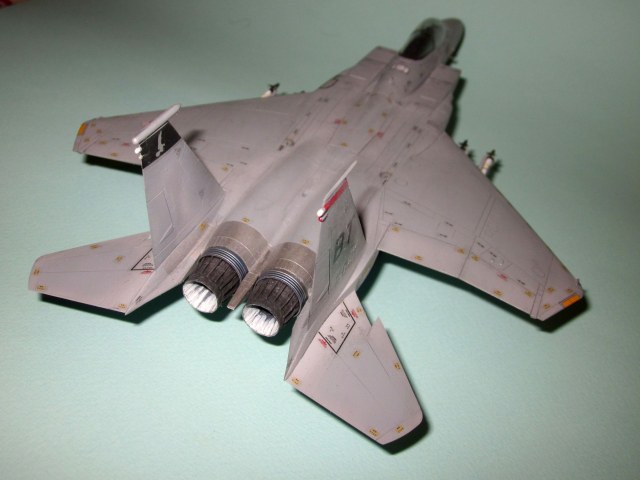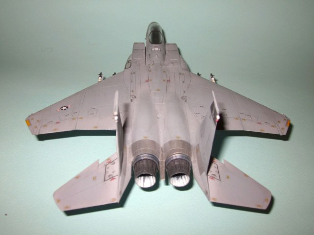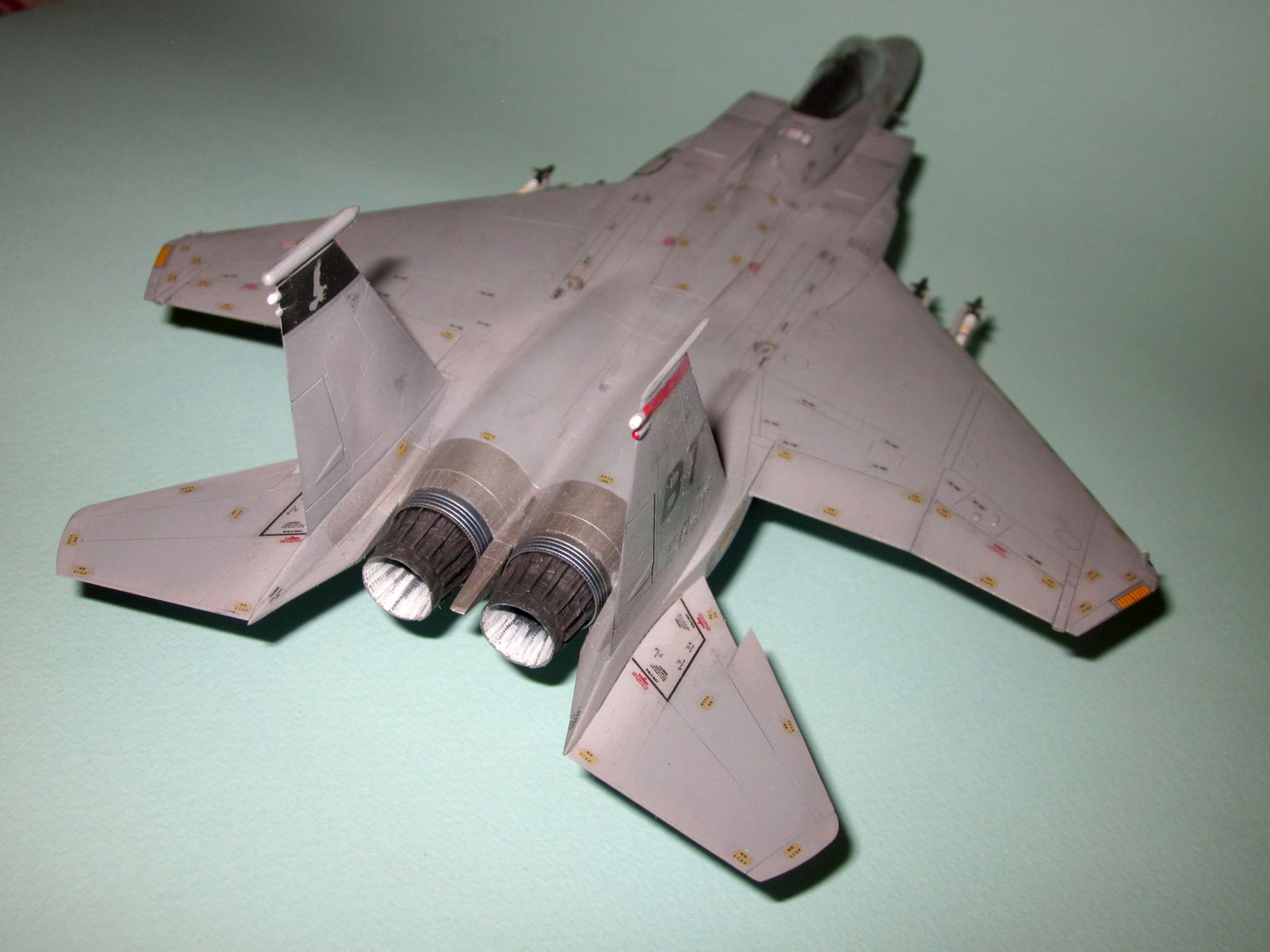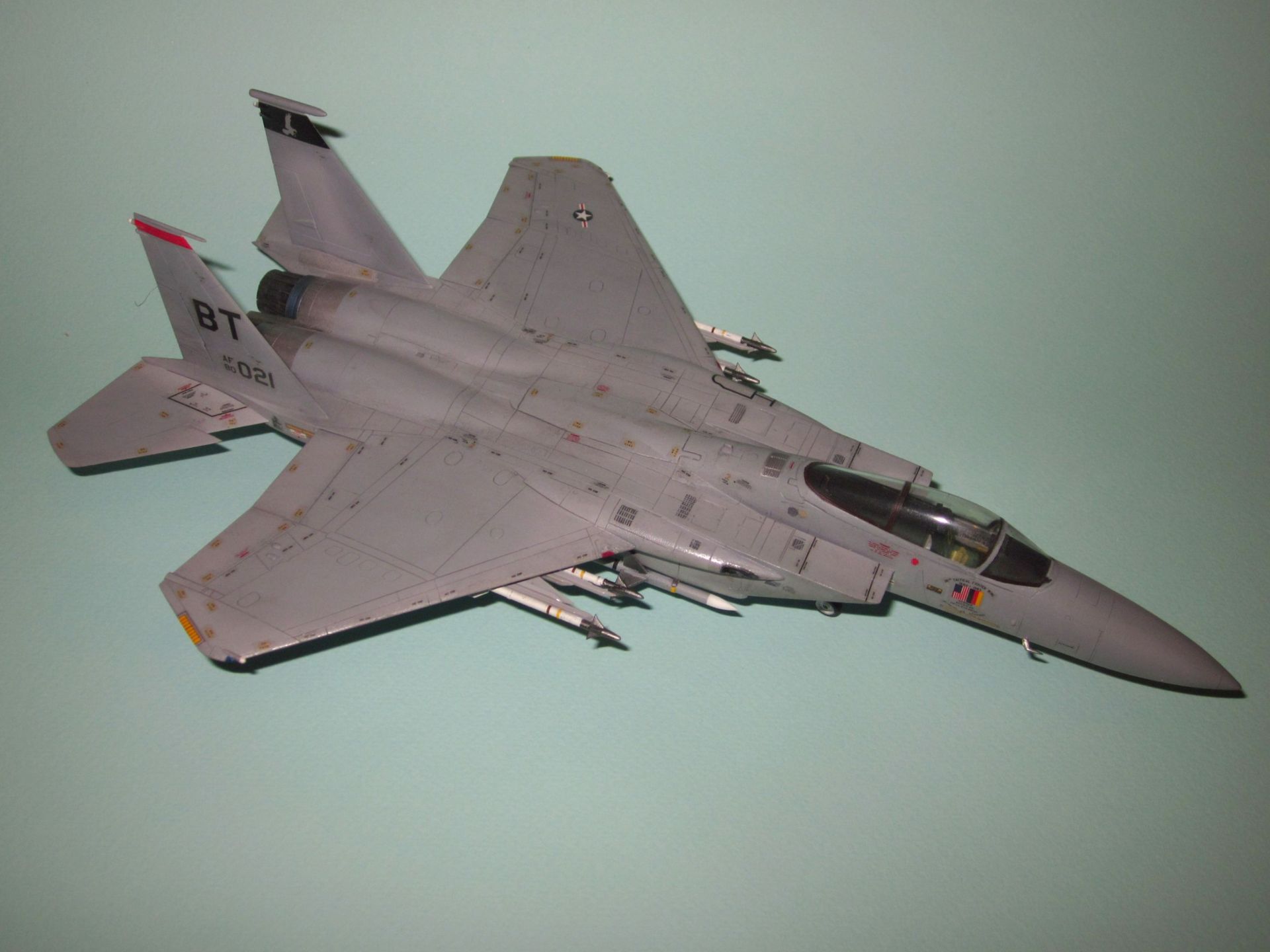 Позвольте представить на ваш суд очередную модель - известный американский истребитель F-15 Eagle. Построена модель была около полутора лет назад. Набор от Hasegawa, так называемой "Королевской серии", который по общему мнению является наиболее достоверной копией данного самолета в 72 масштабе. Сборка "из коробки" с небольшими доработками и дополнениями. В частности сделаны навигационные огни и установлены ракеты из дополнительного набора от той же Hasegawa (кто не в курсе наиболее навороченные модели, т.е. та самая "Королевская серия" у Хаси идет без подвесного оружия, в наборе были только ПТБ, во всяком случае с F-4B/N Phantom и F-14 Tomcat из этой серии, аналогичная история).