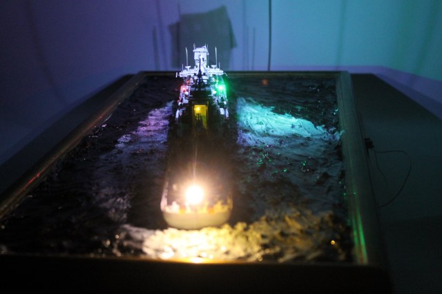 Да мне самому море тут значительно меньше нравится. из-за того что под ним размещалась еще и проводка с батарейкой пришлось несколько изменить последовательность кога корабль вклеивать, когда в рамку вставлять и прочее. Отсюда и косяки полезли