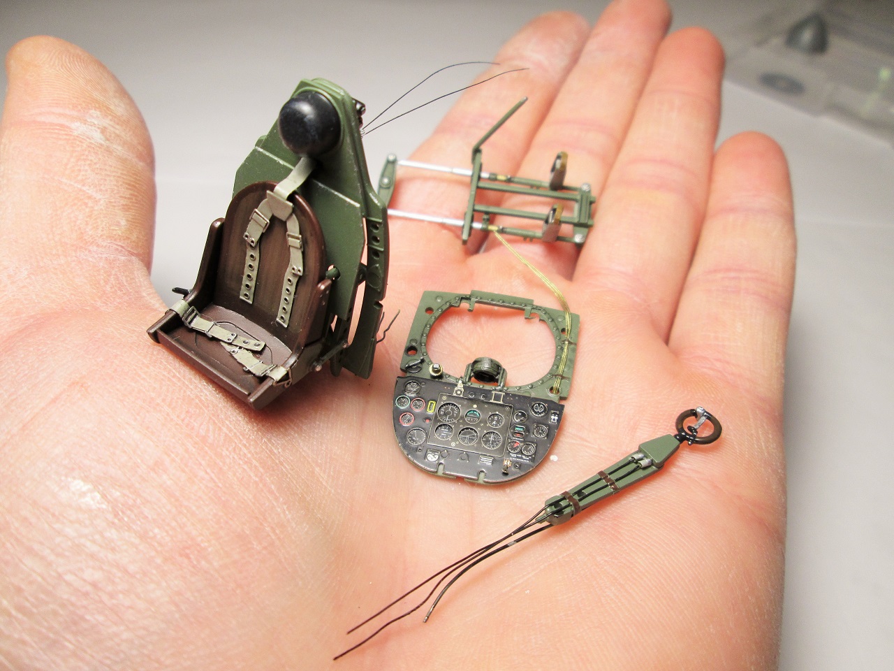Доделки,переделки:убрал имитацию полотна на горизонтальном оперении,имитировал заклепки;сделал дренаж;доработал стойки шасси;доработал водорадиатор;пушки заменил на металлические;добавил воздухозаборник под кабиной;сделал ручку на сдвигаемой части фонаря;доработана дверца;в кабине проводка;прицел;приборка фирмы "Яху";АНО;тросовая антенна;натяжение ремней имитировал;добавлены отсутствующие детали в ниши шасси;что то еще по мелочам.