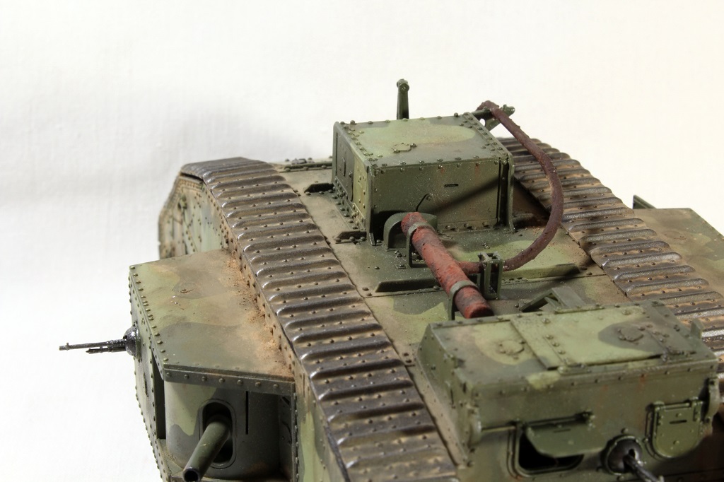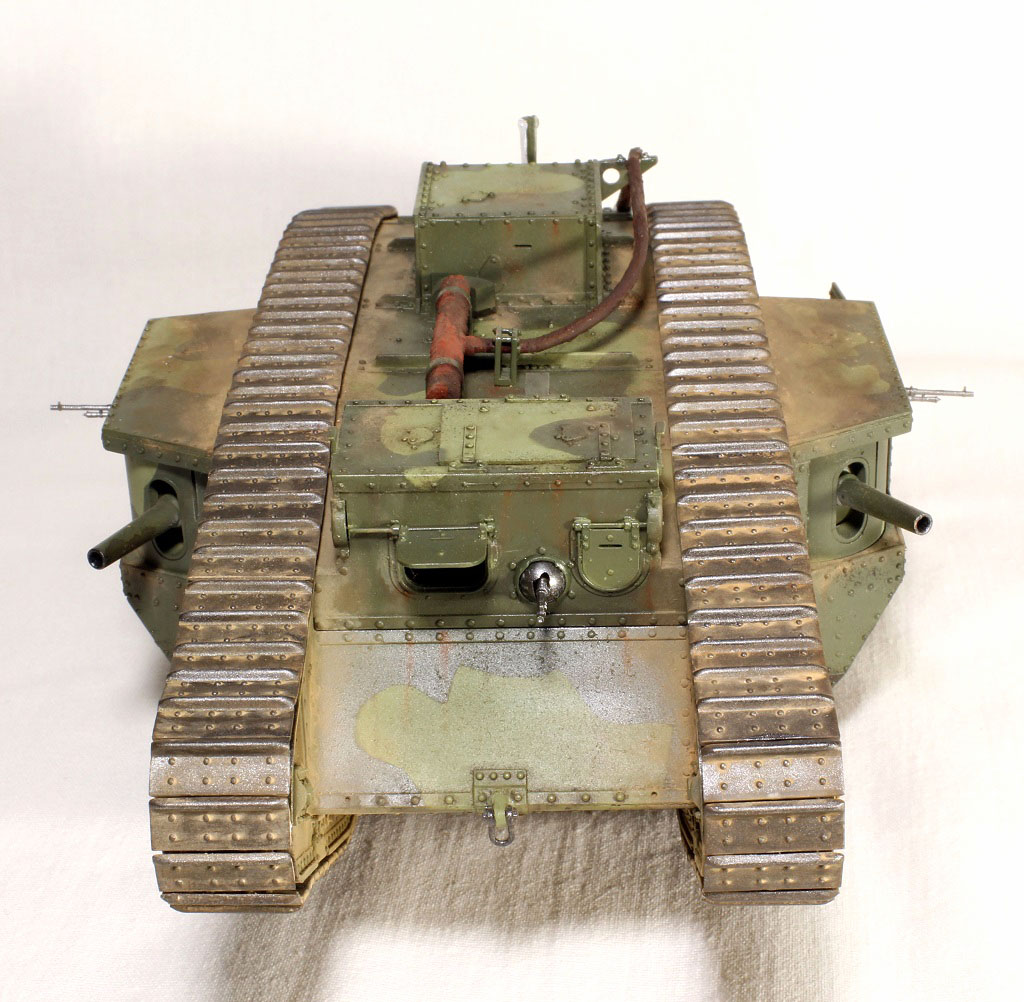 Всем привет! Данный набор от известной фирмы весьма хорош. Мне он понравился: отлично собирается; качественная деталировка. Особенно порадовали пластиковые стволы пушек с нарезами, хоть и требуется их рассверлить поглубже. Фактически неприятный момент при сборке был один - отдельные детали, из которых собираются две верхние рубки, точнее, подвод питателей к ним. Очень неудобно все зашкуривать и зачищать, ибо кругом торчат уступы для позиционирования. Кто будет собирать эту модель, поймет, о чем я. Но, повторю, это единственный негативный момент. Присутствует небольшой курьез - китайские товарищи, проектируя модель, несомненно использовали данные по танку МкV, находящемуся в Луганске. Об этом говорит воспроизведенный в пластике заводской номер на табличке внутри спонсонов - 9186. Но вот засада - луганский танк не чистый самец, как модель, а композит и построить его из "коробки" не получится. Но путаница с номерами беда небольшая, ибо разглядеть их даже со снятой крышей проблематично.