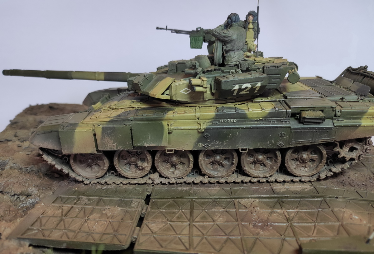 Модель от Trumpeter. Использовались: троса, антенный ввод и ПКТ - Eureka, ствол 2А46М-5 - Magic Models. Экипаж от фирмы Танк.