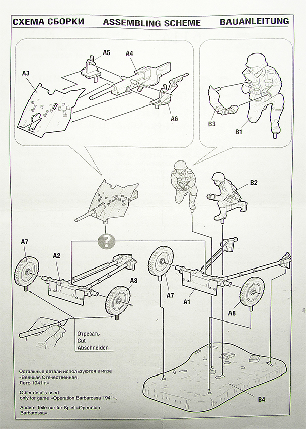 У "Звезды" в 1/72 эта пушечка довольно детально даётся, единственно что не устраивает, так это толщина щита. Я его просто стачивал, хотя довольно "гемарно". У UM этот щит даётся в травлении, но детализация самой пушки и станины полный отстой. Так что эта Рак 36 отличная альтернатива, цена - качество. К тому же бонус, фигурки артиллеристов. У "Звезды" кстати и Рак 40 и Flak-38 с расчётом идёт.