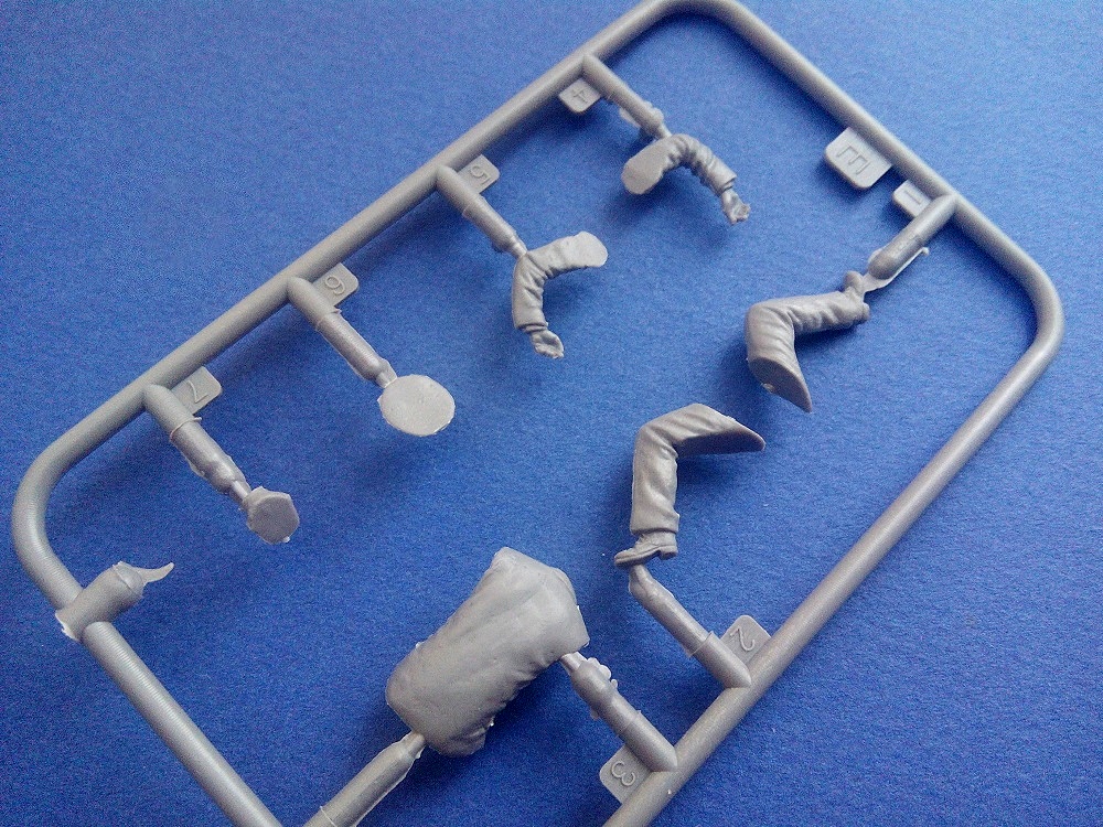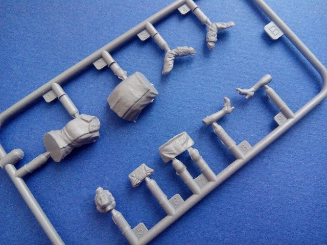 Всего в наборе представлено пять фигур в сидячем положении на пяти литниках светло серого цвета. Общее количество деталей - 42.