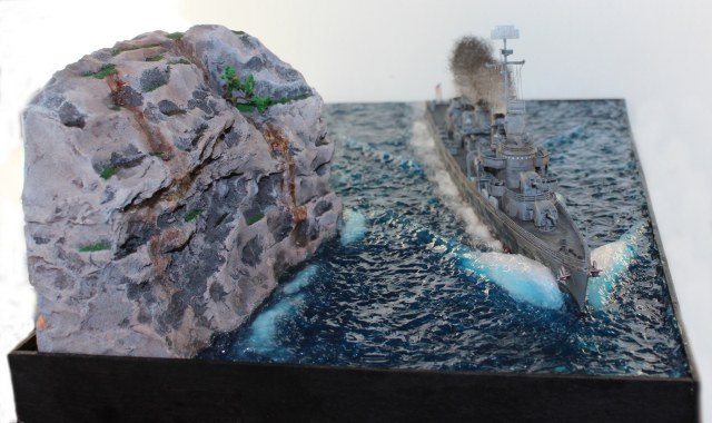 Хорошая диорама, море удачное, кормовой след живо выглядит. Вот носовой бурун не совсем похоже получился.