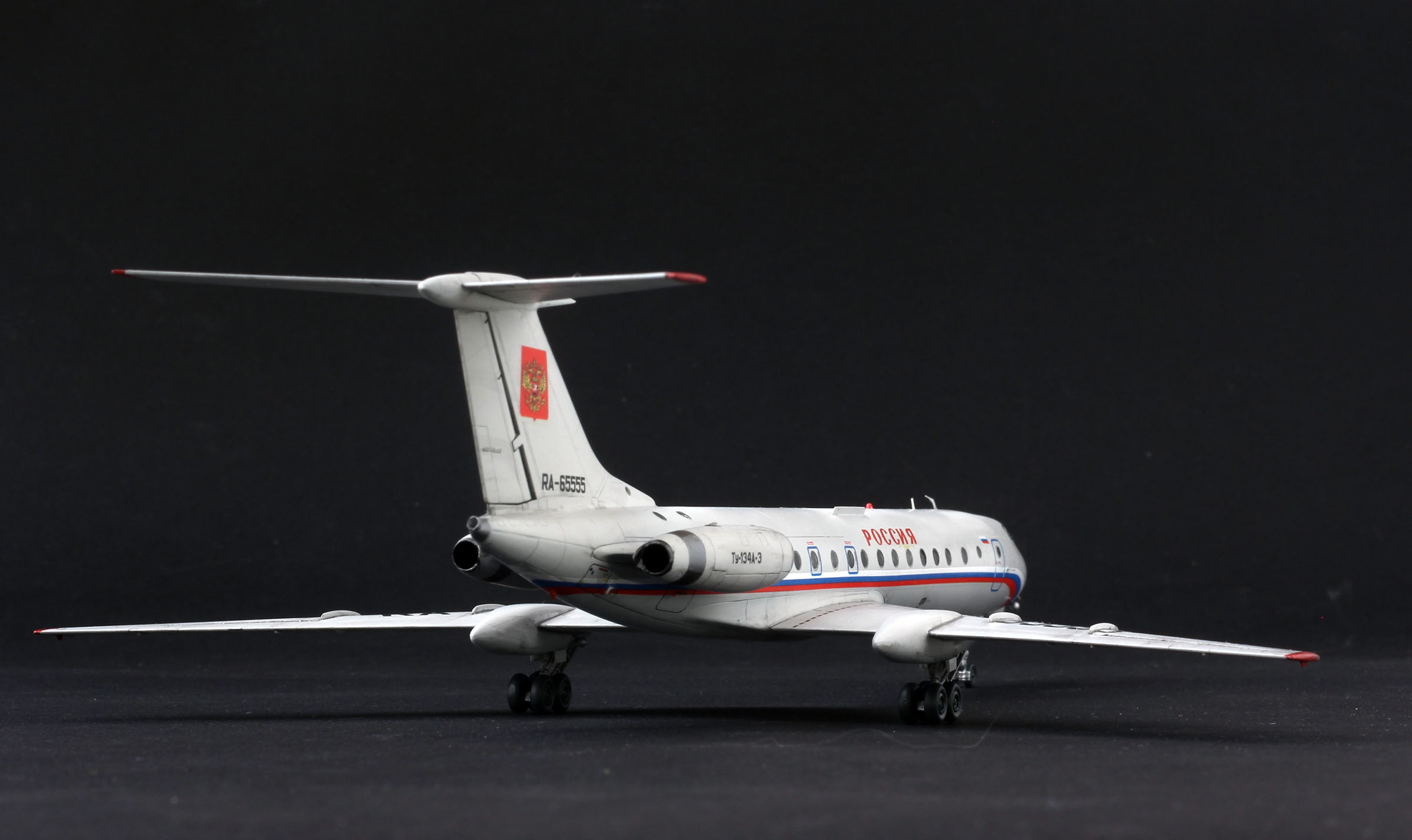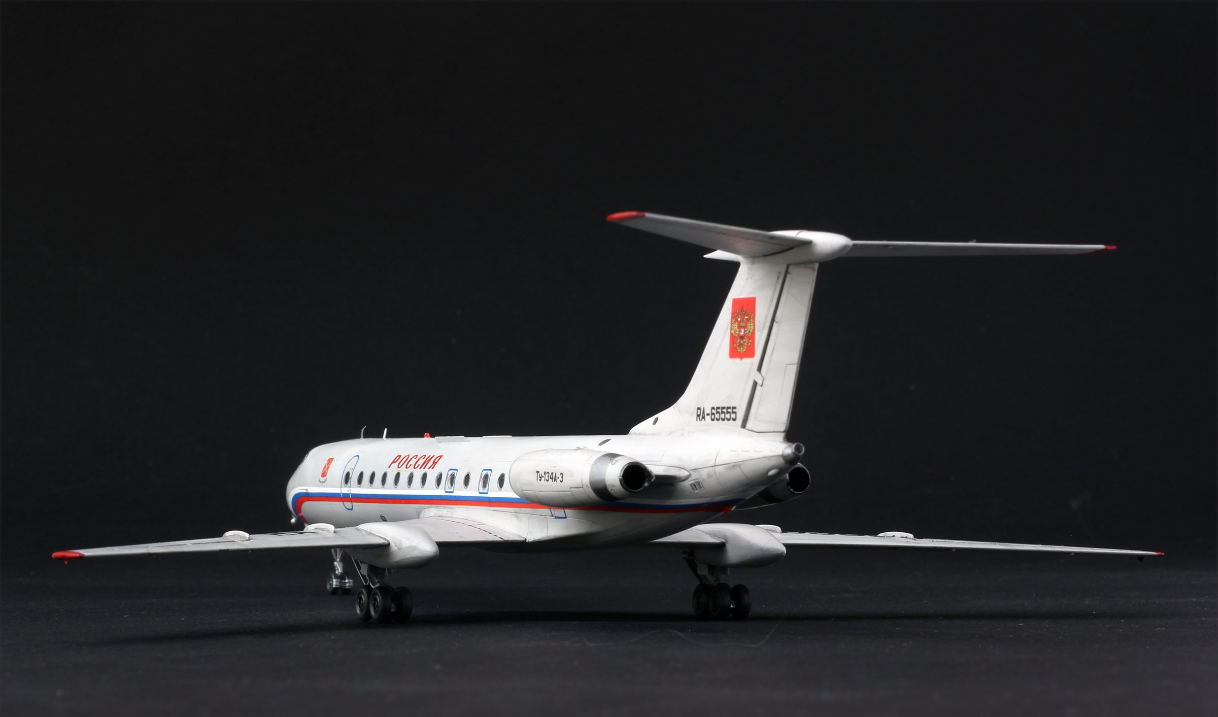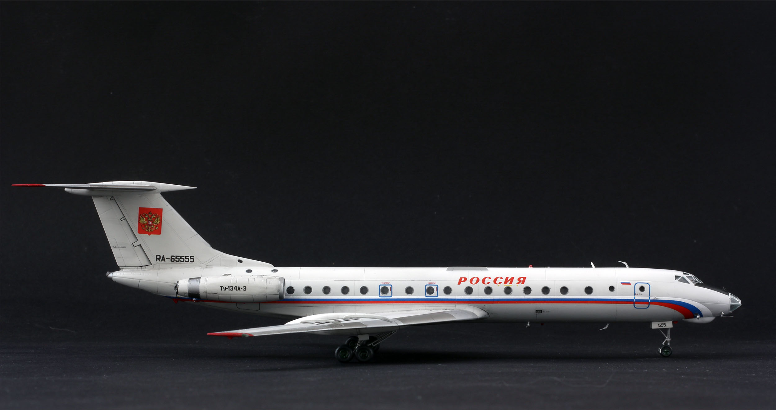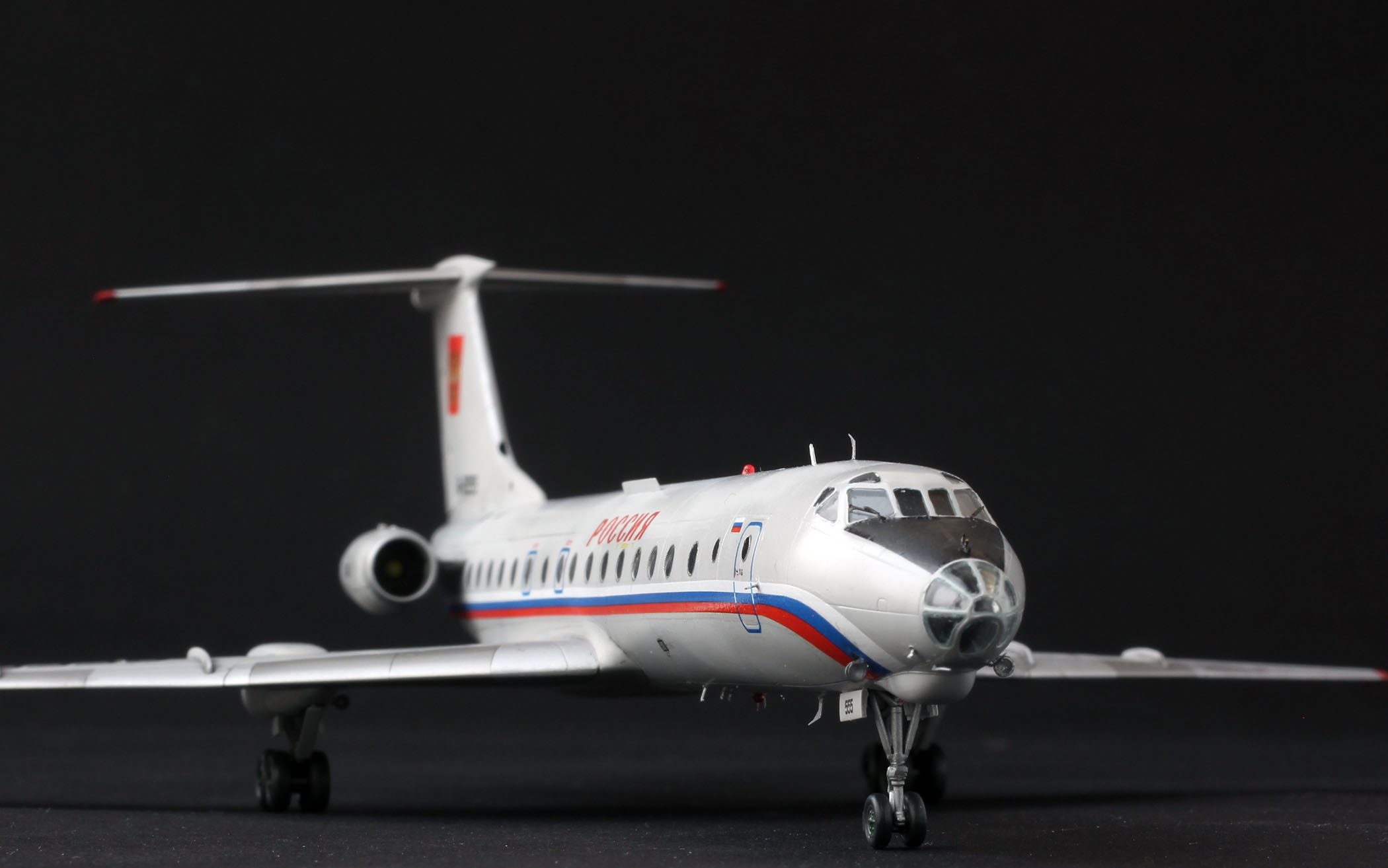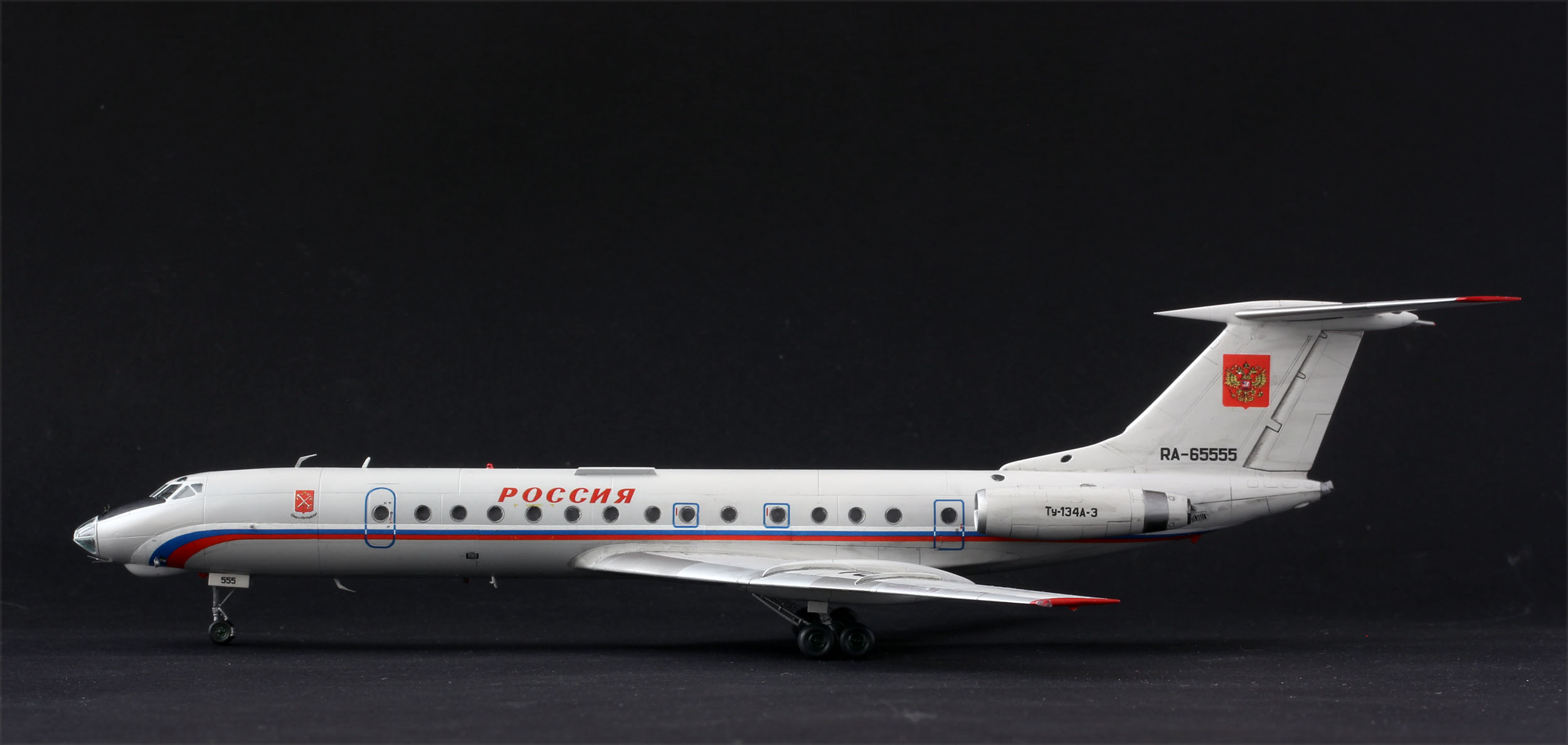 Доказательствашмаказательства. Модель собирал, для человека который работал на этом борту. Он попросил так, я сделал так. Было сказано, что в реальности в один период так и было, триколор по левому борту заклеивали гербом, тк по статусу, пасажиру, триколор был не положен.