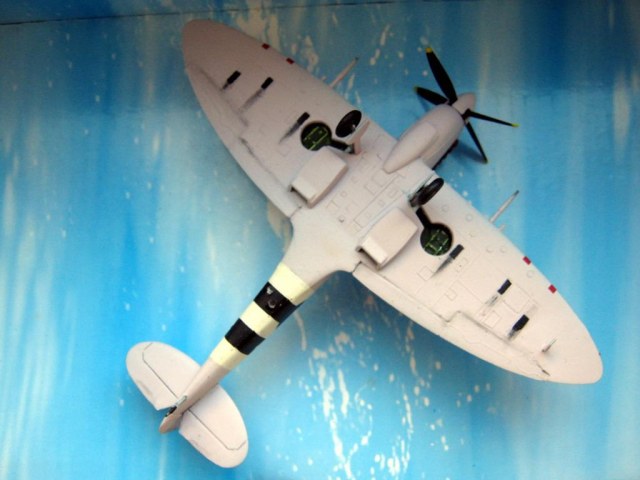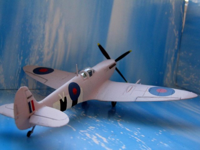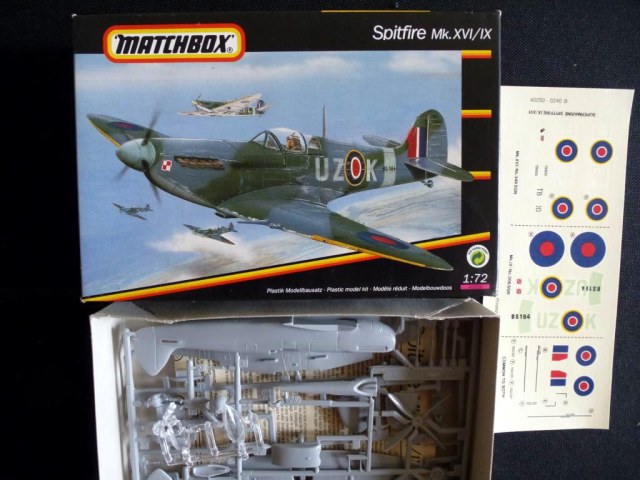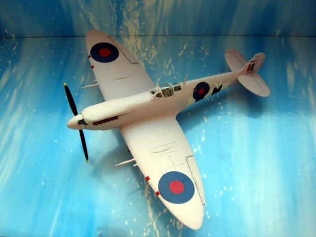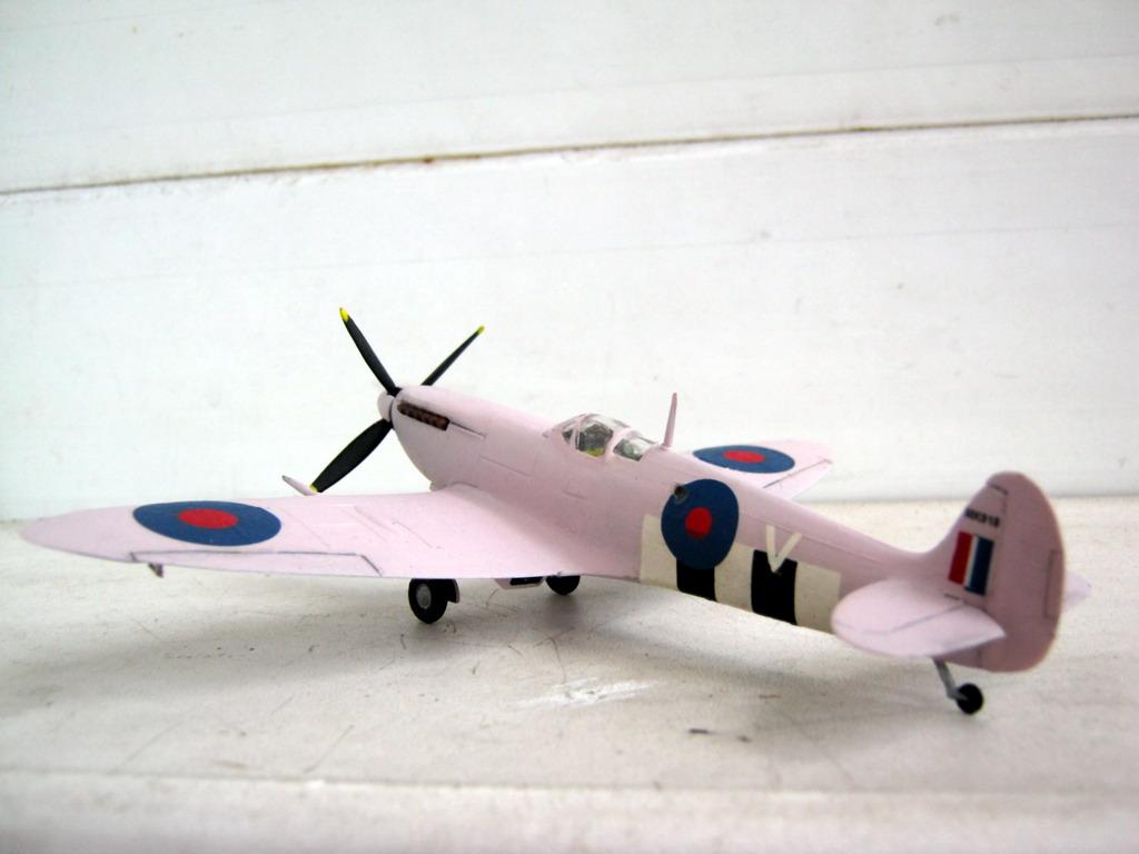 Хотя модель такой модификации в 1/72 выпускает чешская AZModel, я переделал ее из старенького мачбоксовского изделия, выпущенного еще в 1976 году. Первоначально из набора можно было сделать только модификацию Mk.IXC, впоследствии набор модернизировали, сделав двухвариантным, добавилась модификация XVIC(без гаргрота). Мой экземпляр достался мне без коробки, судя по серому пластику, инструкции и декали он выпущен в 90-х годах, в черной коробке (фото набора взято из сети). Набор вполне типичен для 70-х годов, очень напоминает фроговский, впрочем, тот, возможно, даже получше будет. Качество литья так себе, облоя практически нет, однако имеются многочисленные утяжины там и сям. Собираемость сквернейшая, главной проблемой стали эллиптические законцовки крыла, они чуть ли не на миллиметр толще мест, куда их надо ставить. Впрочем, подобное я наблюдал и у других моделей, Хаси, в частности. Собирал как есть добавил только отсутствующий в наборе ПВД, остальные изменения касались исключительно модификации. Сделал иллюминаторы фотоаппаратуры и заменил руль направления, новый позаимствовал от минской модели. Грунтовка АК-070, окраска самонамешанной нитрой, цвет получился уже не такой кричащий, как на предыдущем розовом Спите. Декали подобраны из запасов, номер напечатан на лазерном принтере. Финишное покрытие – баллон Bosny. С выделением рулевых поверхностей снизу не получилось ввиду скверной стыкуемости деталей в этом месте, получается щель в миллиметр шириной, которую пришлось шпаклевать, а затем делать новую, более узкую. Собственно, на этом все.