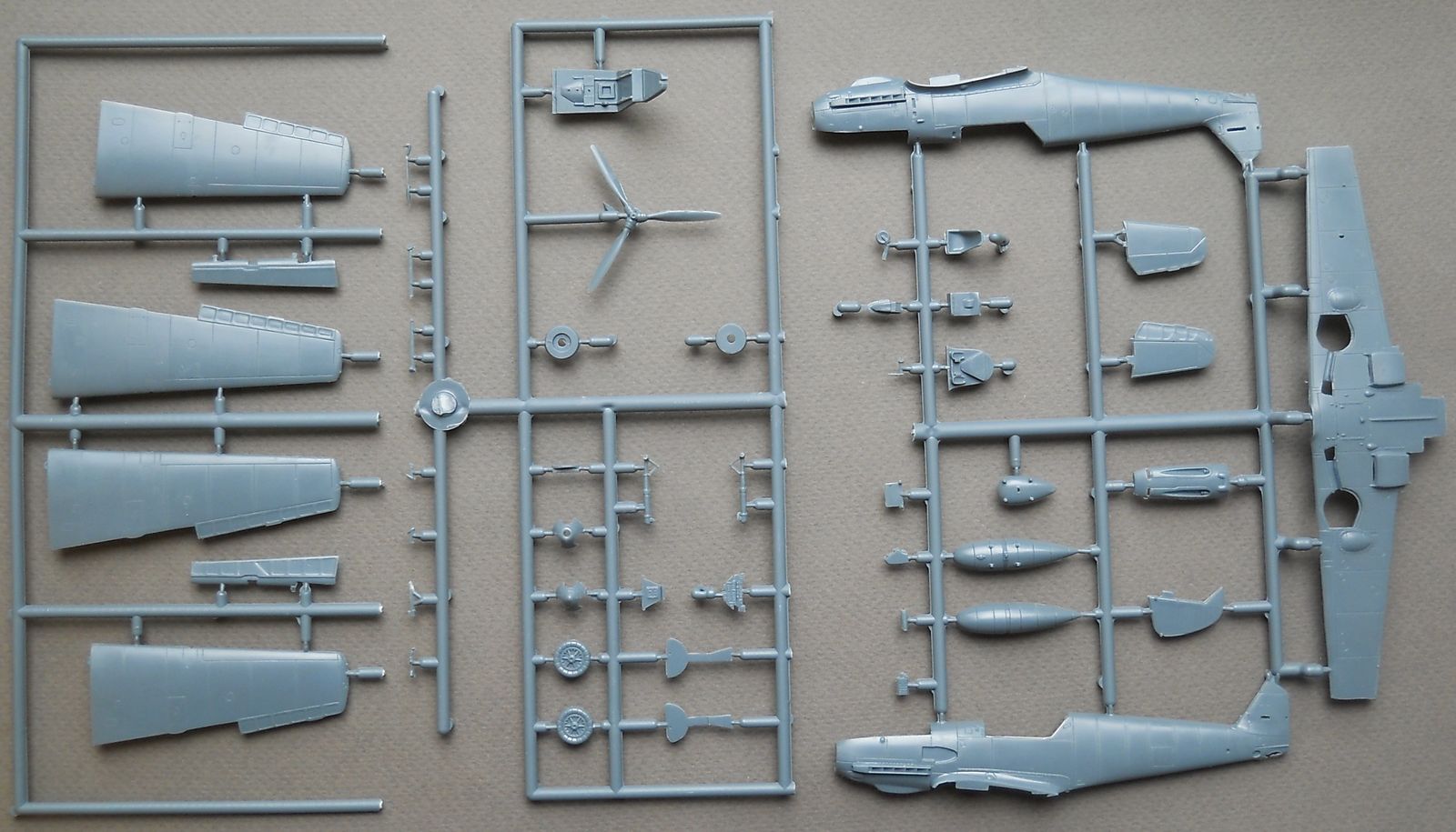 Вот один в один прям пластик от ICM,даже некоторые утяжины на своих местах.Хотелось бы ,чтоб как у ICM с их исправленной длиной фюзеляжа.Переделали,конечно, свои 20%, чтобы не было плагиату. Ну и минус качество на технологию ЛНД.