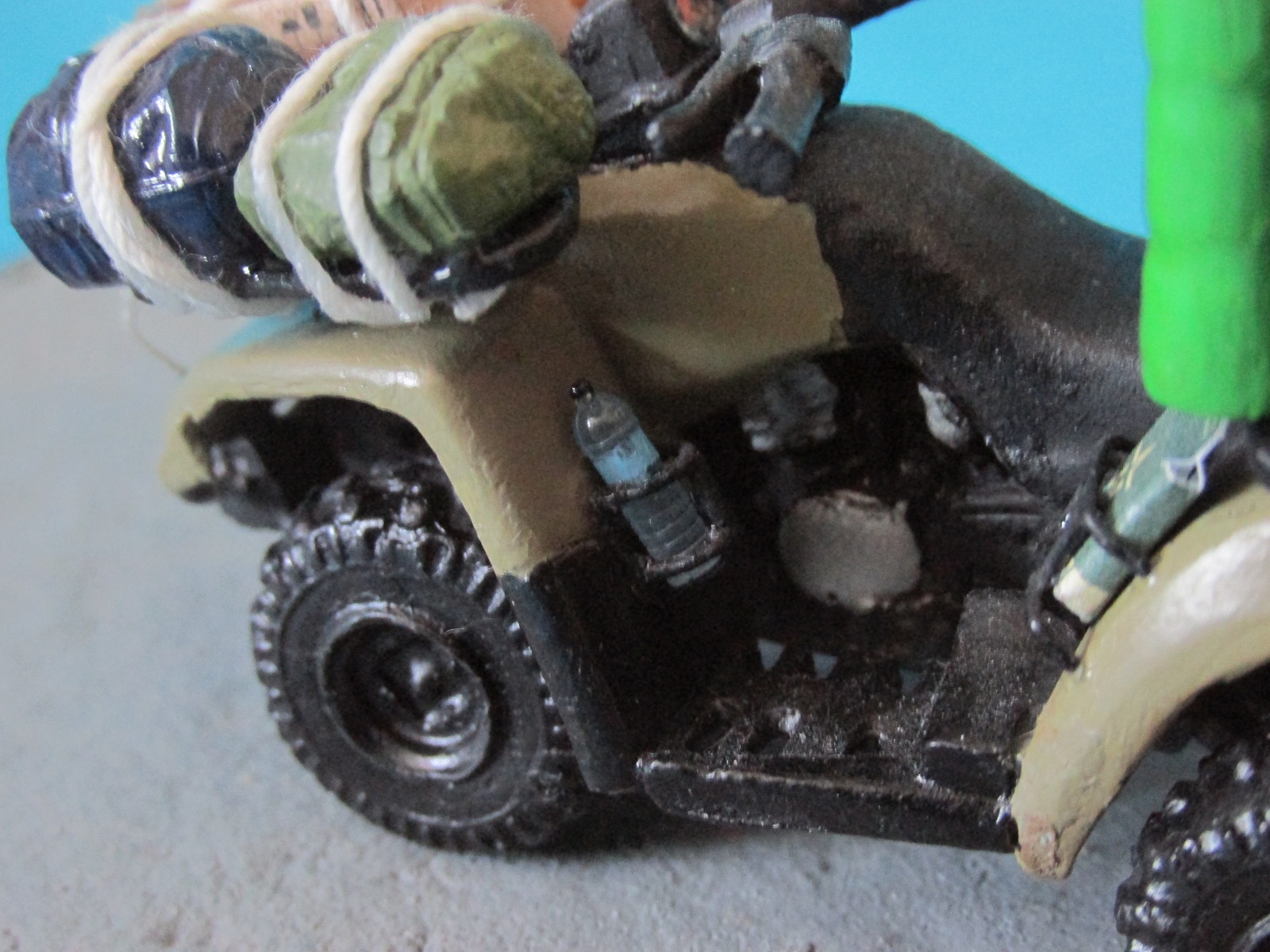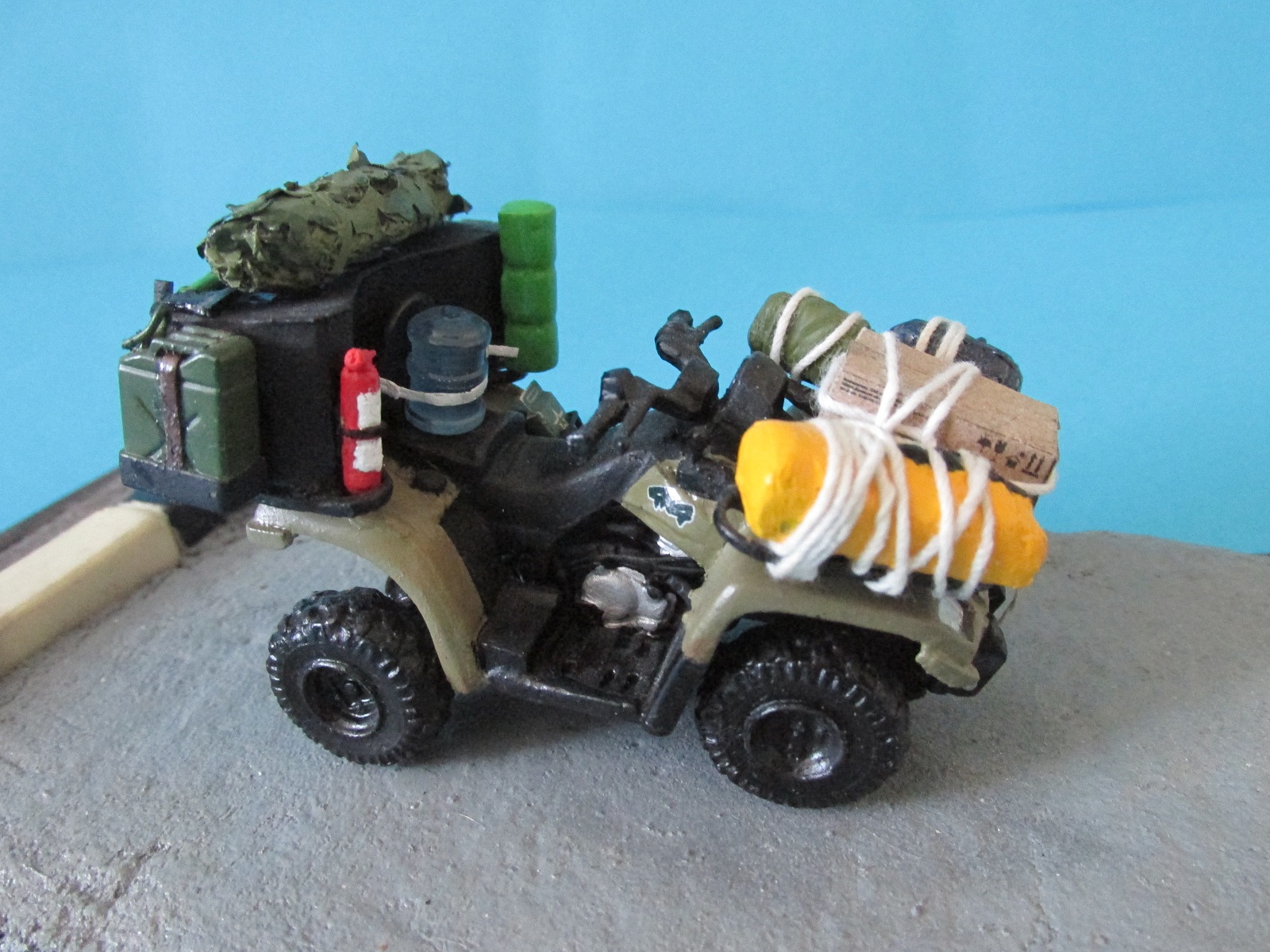 P.S. Коротко по самому набору. Качество отливок и стыкуемость низкая, где то шкурить, где то шпаклевать. Несколько деталей просто не было, а инструкция весьма скромная. Кому нужен именно BRPBombardier 800 outlander, то придётся смириться с его недостатками. Кому нужен просто квадрик, возьмите от Bronko или какого нибудь другого производителя. Из плюсов огромное количество разной снаряги.