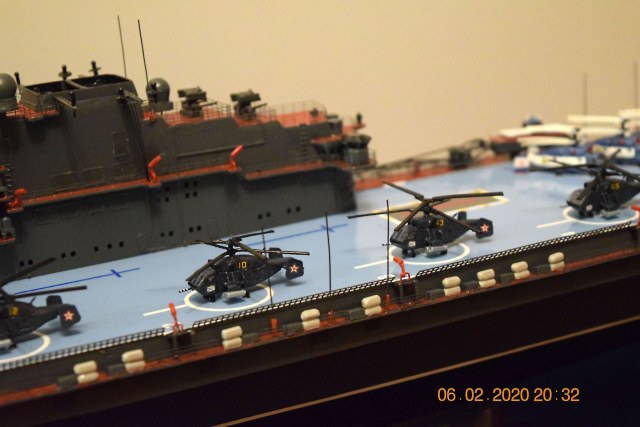 Корабли пр.11780 задумывались ВМФ СССР в конце 80-х годов универсальные десантные корабли, оборудованные доковой камерой для оперативной загоризонтной высадки десанта. Длина корабля по техпроекту должна была составлять 196 м., стандартное водоизмещение до 25000 т. Корабль планировалось использовать в двух вариантах: в противолодочном и десантном. В противолодочном варианте он нес 25 вертолетов Ка-25. В десантном корабль мог нести 12 транспортно-боевых Ка-29 и четыре десантных катера пр.1176 или два десантных КВП пр.1206. Представленная модель выполнена в десантно-противолодочном варианте со смешанной авиагруппой.