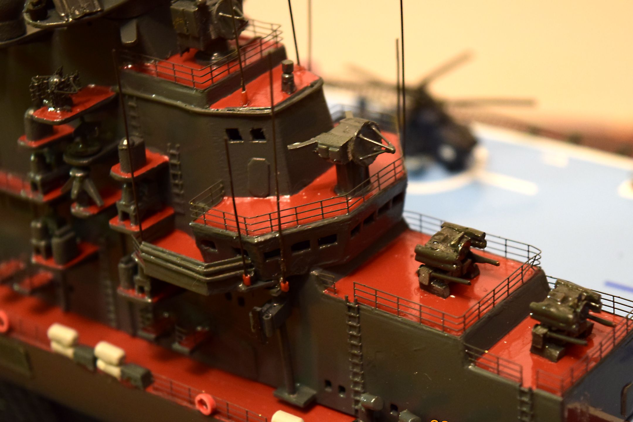 Окраска убивает все восприятие от модели. Да и надстройки в воздухе висят, от палубы отстают.