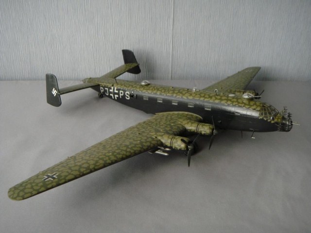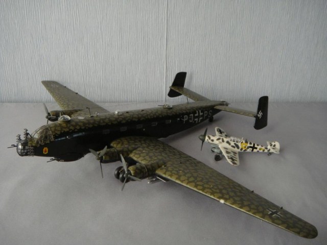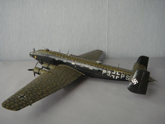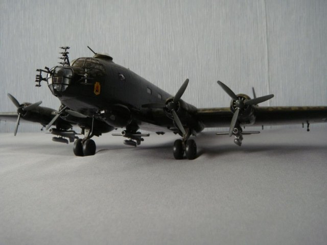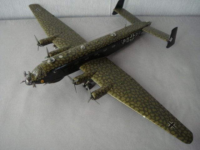 Добрый день, уважаемые коллеги. Представляю еще одну модель всем хорошо известную. Для любителей точных деталей: ракета-бомба Hs 293 была не только серо-голубой, а еще вот такой, см. фото. Красил все кистью нитрокрасками, в том числе мотлы. Исторической привязки к конкретному борту с такими бомбами нет, уж очень понравилась такая схема окраски.