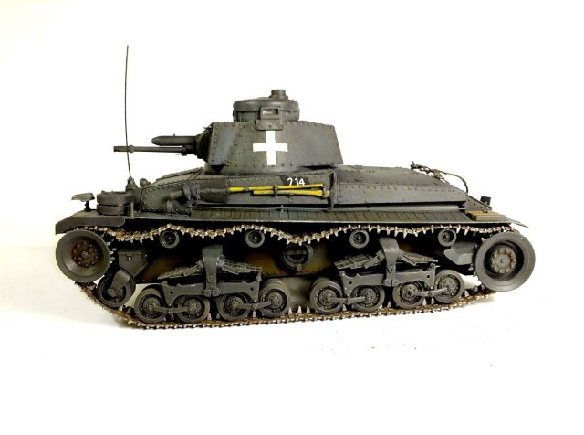 В целом вышло очень неплохо. Единственно, провис какой-то не реальный. На настоящих машинах этот провис регулируется постоянно, т.к. механик это чувствует по поведению машины. Также вопрос по запасным тракам на крыле и фаре "Нотек" - в Польше их еще не было, их стали ставить на PZ. 35(t) перед французской компанией. Перед Польшей были поменяны радиостанции на немецкие, установлены задние немецкие габариты, введен пятый член экипажа и смонтировано новое внутрипереговорное устройство. Все остальные доделки и тюнинги пошли позже, по результатам польской компании. Сейчас сам потихоньку собираю такую же машину, только от "СМК"...