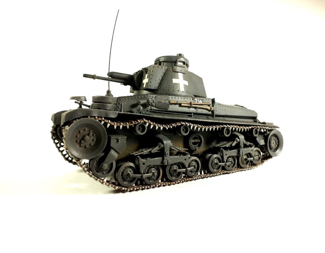 Наконец-то закончил этот проект. Рассказывать о прототипе можно долго, но все, кто увлекается бронетехникой прекрасно знает историю создания и короткой службы этого чешского танка, успевшего повоевать на стороне нескольких стран. Впервые решил собрать что-то более-менее серьезное. Модель состоит из огромного количества деталей. Примерно около 800. Чрезмерное членение деталей от Bronco иногда доводила до отчаяния. Полный обзор на этот кит я давал ТУТ. Собиралась тем не менее неплохо. Шпатлевки почти не понадобилось. Матчасть тоже довольно неплохо соблюдена. Есть варианты сборки на Польшу, Францию и начальный период ВОВ. Не понравились несколько вещей - гусеницы, которые могли рассыпаться, и рассыпались несколько раз, свободно болтающиеся тележки ходовой и толстые декали. В остальном очень приличный набор для опытных моделистов. Мне наверное было рановато браться за него. Тем не менее что сделано то сделано и модель отправлена в мой домашний танковый музей.