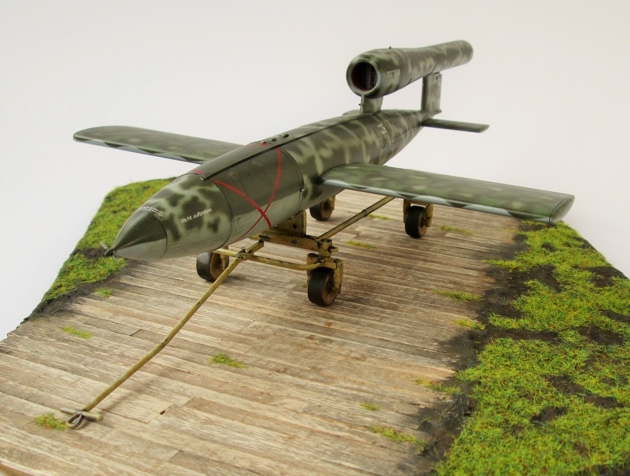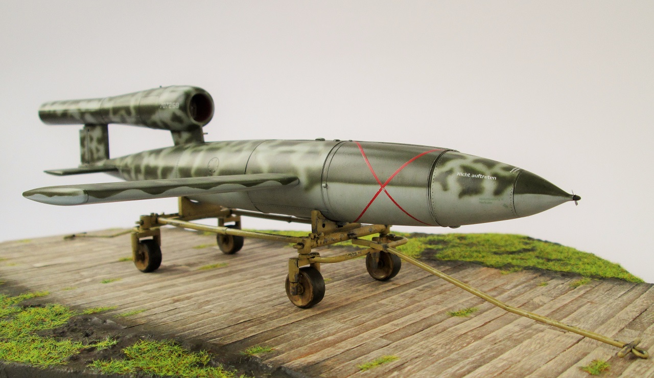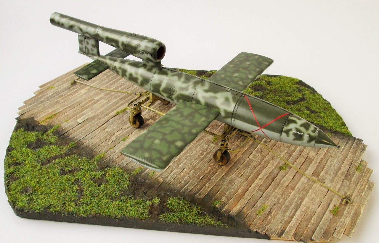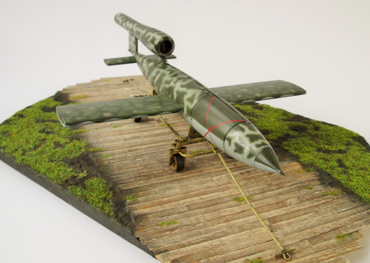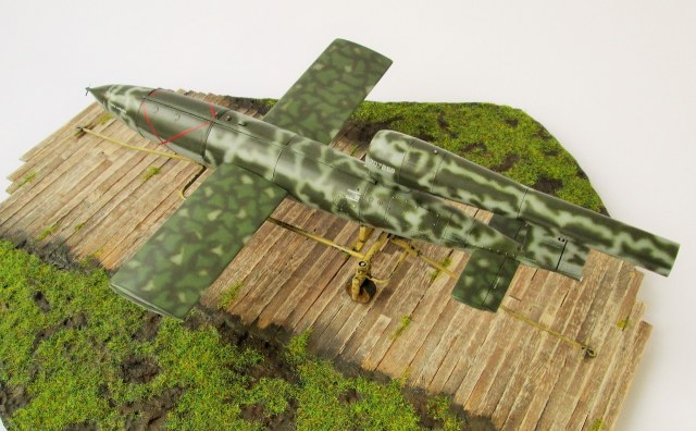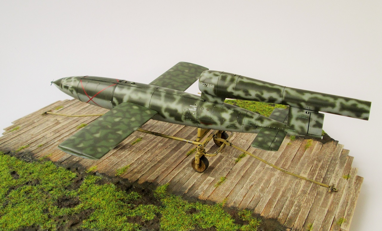 Очень красивый! Может парочку гансов к нему приставить? В пальто и шляпах... "гражданские инженеры, блин". :-) Одного не могу понять. Немцы конечно те еще извращуги, но какой смысл так богато расписывать, так виртуозно камуфлировать фактически одноразовую вещь? Всего лишь - бомбу, хоть и с крыльями... Ответ может быть лишь один - Готовили к показу самому Фюреру! :-) Удачи!