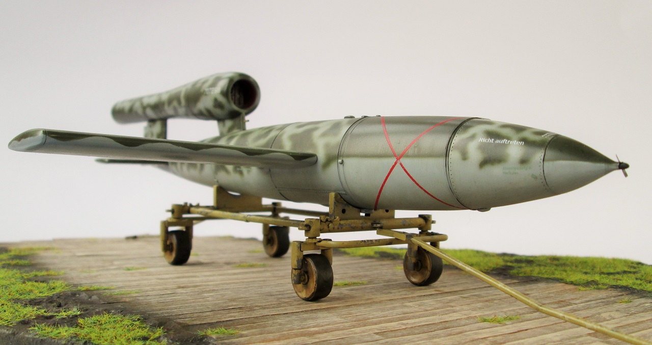 Доброго времени суток коллеги!Хочу представить вашему вниманию модель Фау-1 в 32-м масштабе."Спешл хобби " не очень порадовал качеством как пластика так и стыковкой частей модели.Но шпаклевка и супер клей выправили ситуацию.В комплекте шла тележка,она как раз сделана отлично.Красил красками хобби колор,лак хатака,чуть масла,акварельные карандаши.Сделал подставку,что бы не скучно смотрелась.Подробная стройка здесь. http://royalscale.ru/forum/viewtopic.php?id=1460 Всем приятного просмотра!