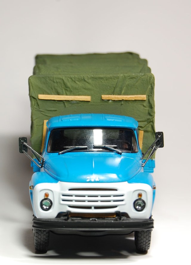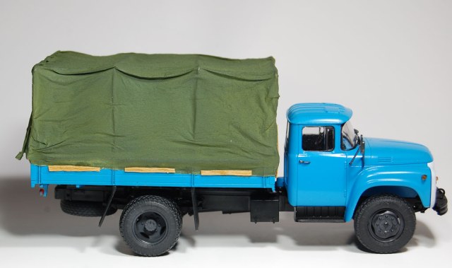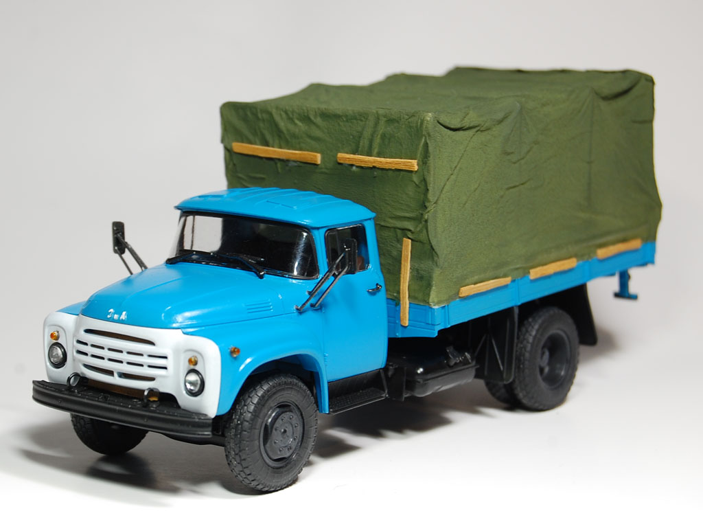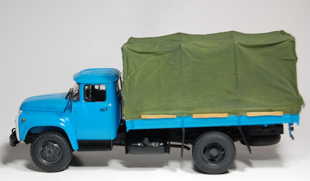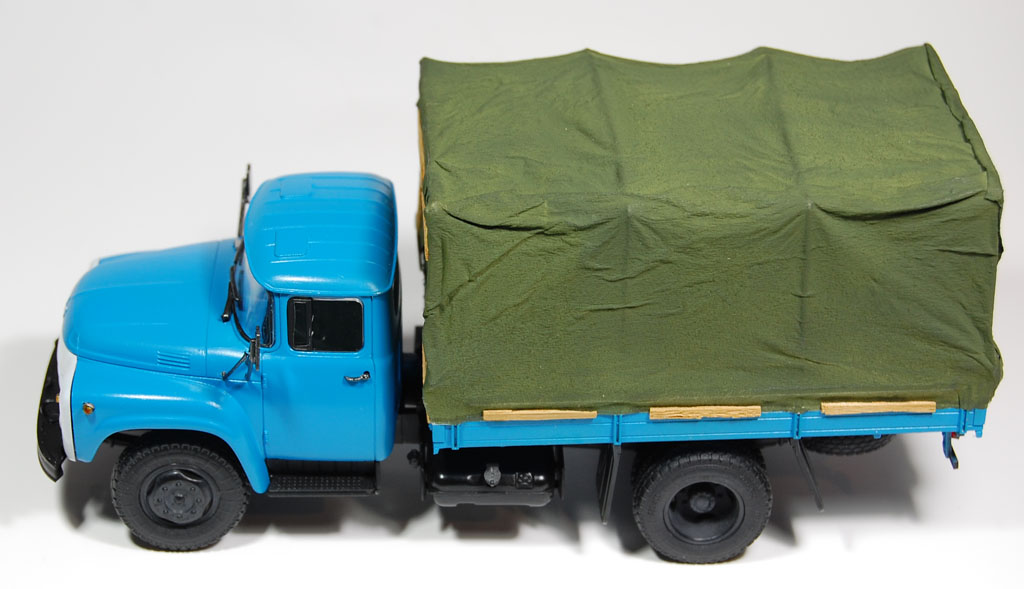 Надрамник вроде неверно собран, большой разрыв между кабиной и кузовом, опорные бруски должны больше выступать в задней части. Вы, добавили на ЗиЛ задние буферы? Подтвердить фото можете? Брызговики задних колес слишком длинные, они не были ниже топливного бака и подножек кабины. Кит не совсем удачный для данного прототипа; прототип не ранее августа 1984г выпуска (поздние габариты), АВД дает 130-й периода 1977-1980г. (2 люка, отсутствие огней автопоезда).
