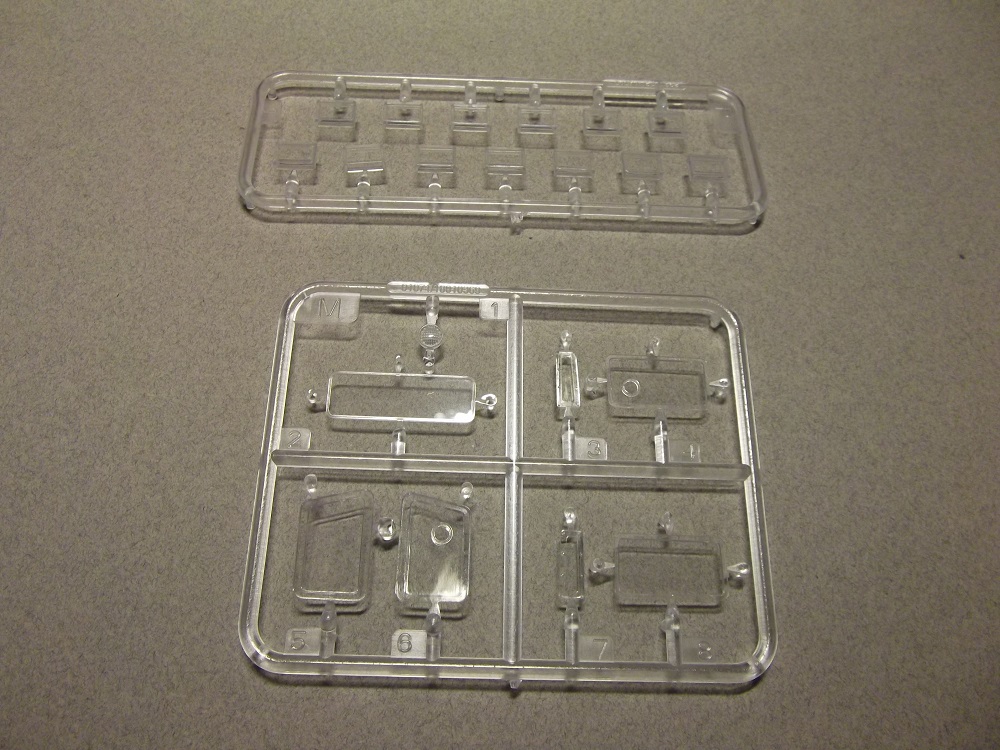 На прозрачном литнике даны стекла, фары, и зеркала заднего вида.