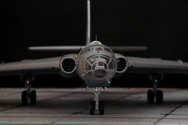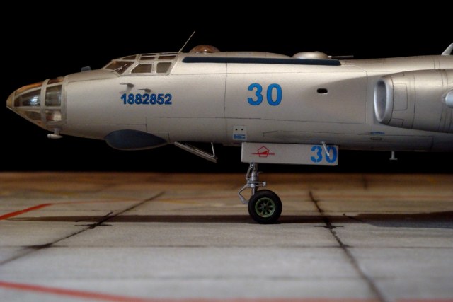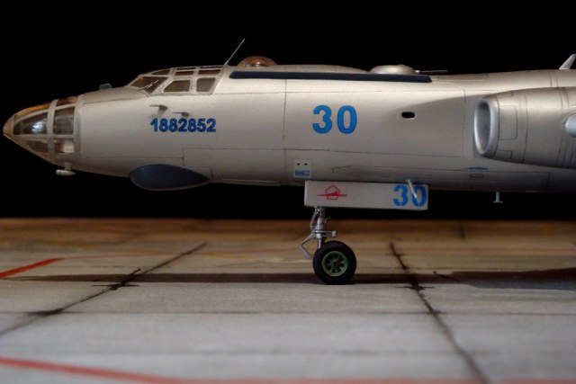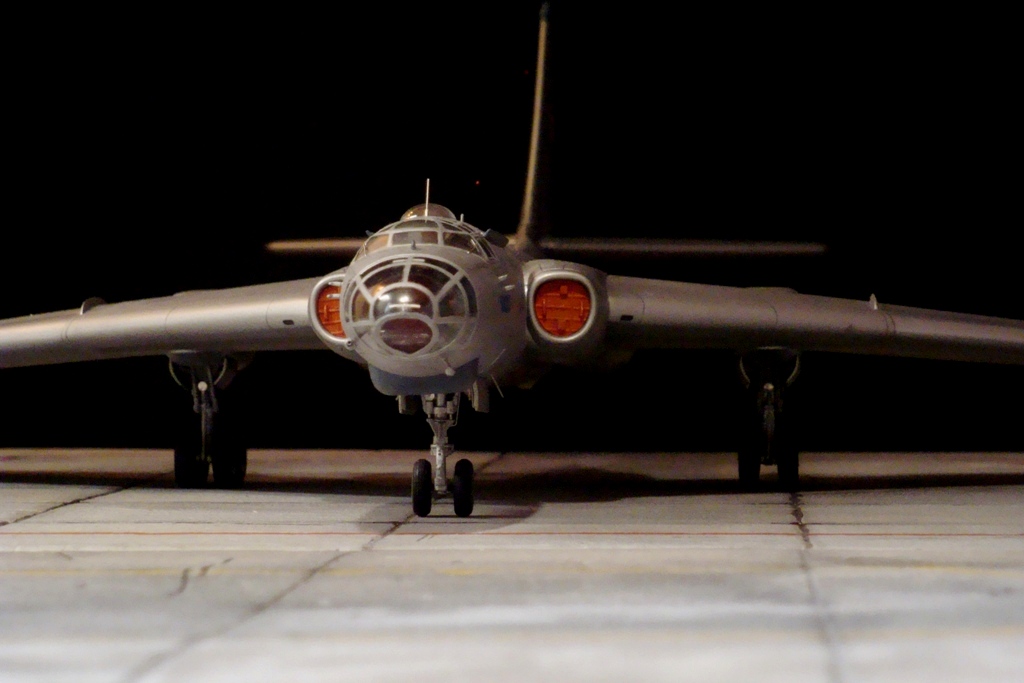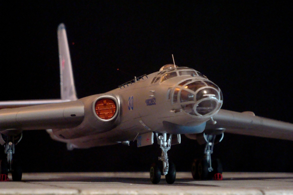 Добрый вечер! Друзья, перед вами легендарный Ту-16. Я не любитель военной тематики, но заказчик уговорил меня на эту работу. Хотя мне этот самолёт по душе. Первое, что я сделал это снял ужасный переплёт с фонаря и вручную нанёс новый. Второе, не собирая модели приступил к постройке передней стойки шасси. То, что было в коробке это... Так-же в процессе сборки заменил ВЗ и сопла движков. И так шаг за шагом делал то, что будет похоже на Ту-16-й. Друзья, модель перед вами. Желаю всем приятного просмотра.