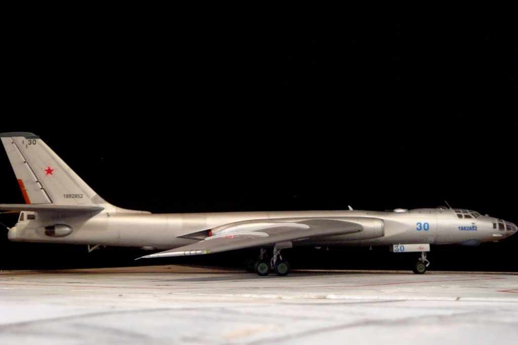 не скажу, что я большой спец по ту-16, но первое что бросилось в глаза это маленькая звезда на киле, поискал фото аналогов - не нашел. фото прототипа есть ?