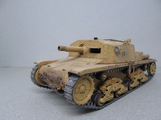 Красил самоходку акриловыми красками от АКАН, Revell и "Звезды". Загрязнять модель не стал, собиралась она больше для коллекции, для полки (да и какая в Северной Африке грязь? Песком если только подзамести...).