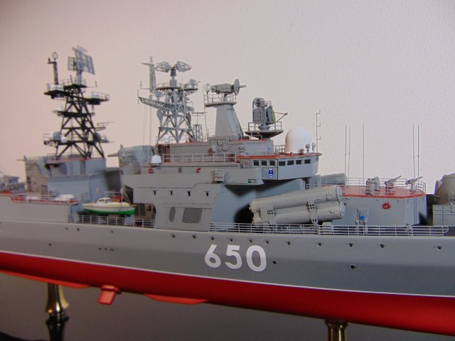 Здорово! Красиво и аккуратно, но все же есть несколько минусов из разряда придирок: Есть щели и довольно таки большие в надстройках, нет кольцевых антенн, оба флага вроде как не вешаются одновременно и у вертолета лопасти должны быть провисшими.