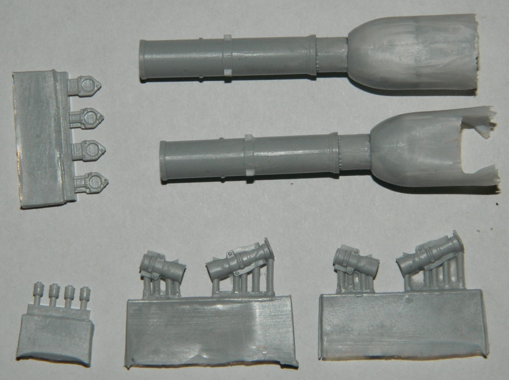 6 точеных деталей из алюминия, 4 из них кожухи стволов пушек диаметр 2.7мм, 2 пламегасителя ствола диаметр 2.4мм