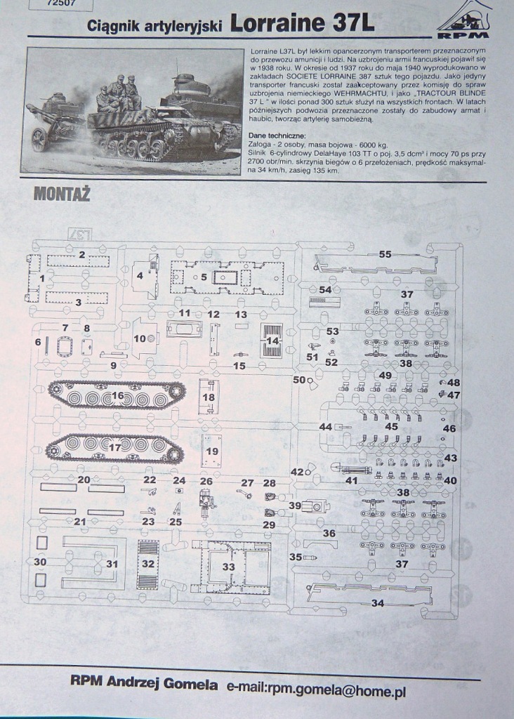 Всем, здравствуйте! Выставляю обзор артиллерийского тягача «Lorraine 37L» от фирмы «RPM». Lorraine 37L (полное официальное название Tracteur de ravitaillement pour chars Lorraine 37L или гусеничная машина обеспечения бронетанковых соединений) . Историю создания и применение писать не буду, кому необходимо, тот сам найдёт источники и нужную ему информацию.