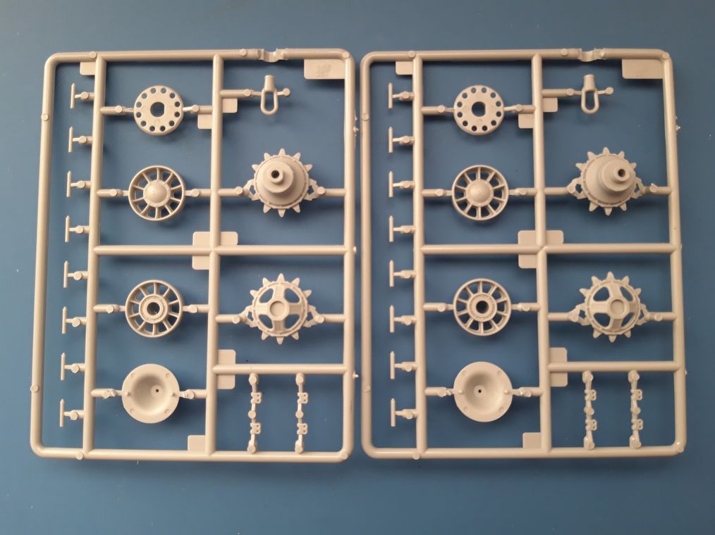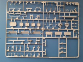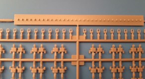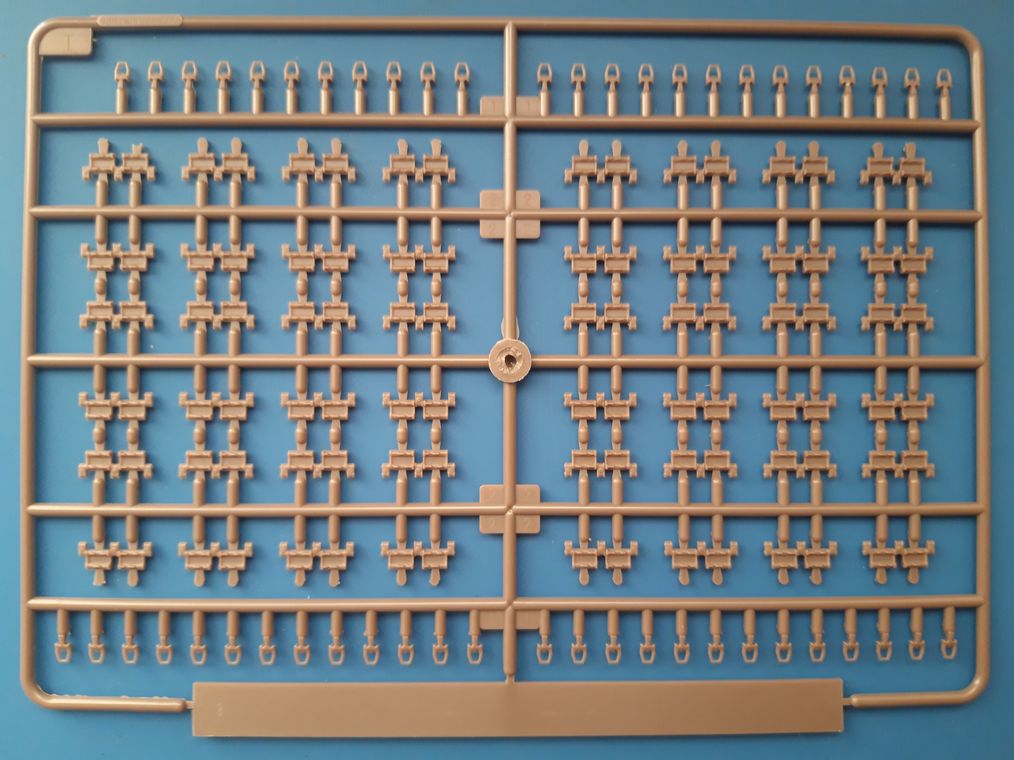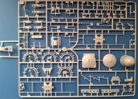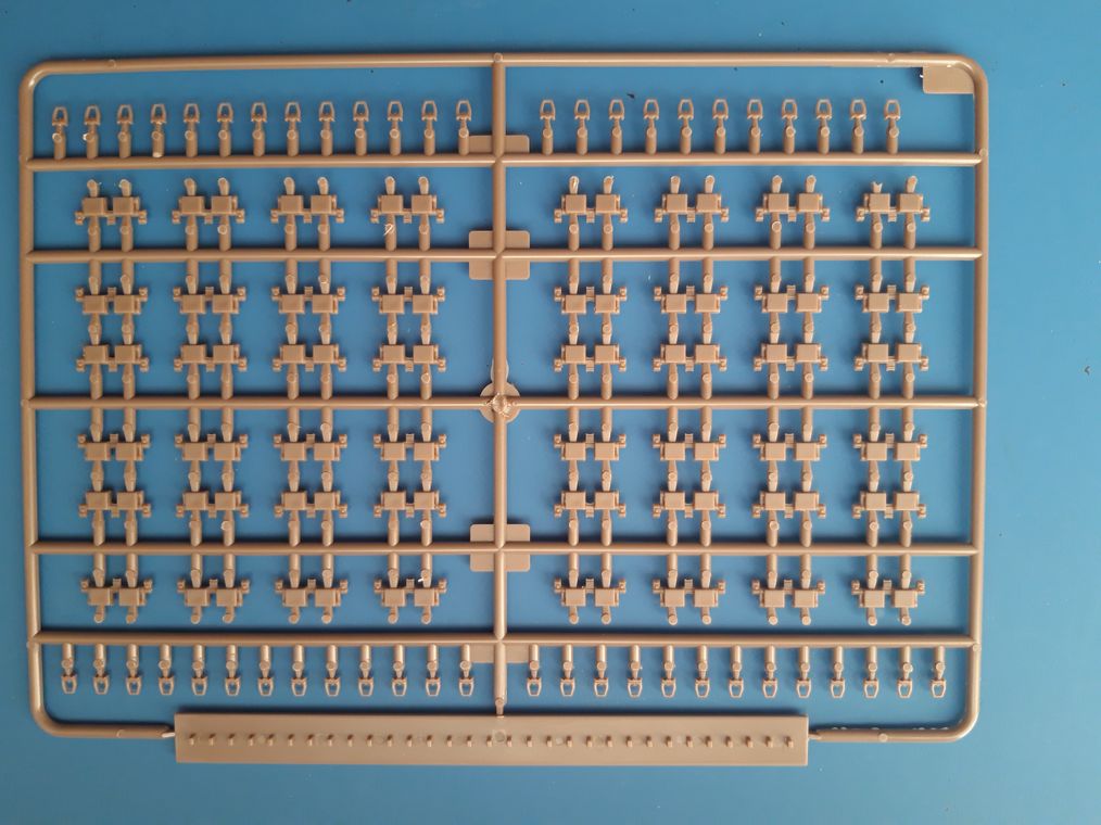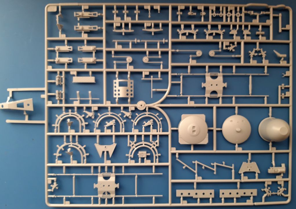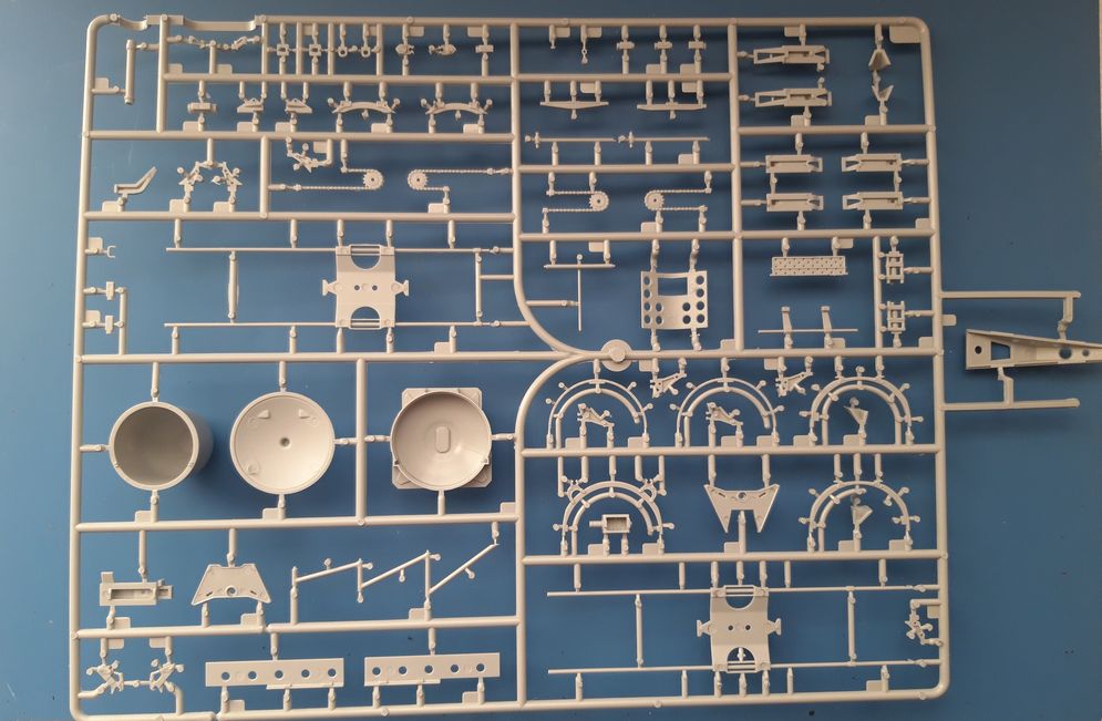 980 деталей,стандартный серый пластик(при обработке фото цвет пластика местами уходит в желтый)все детали отлиты очень качественно, неплохая детализация