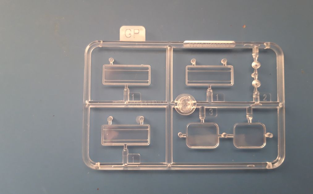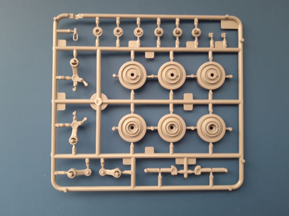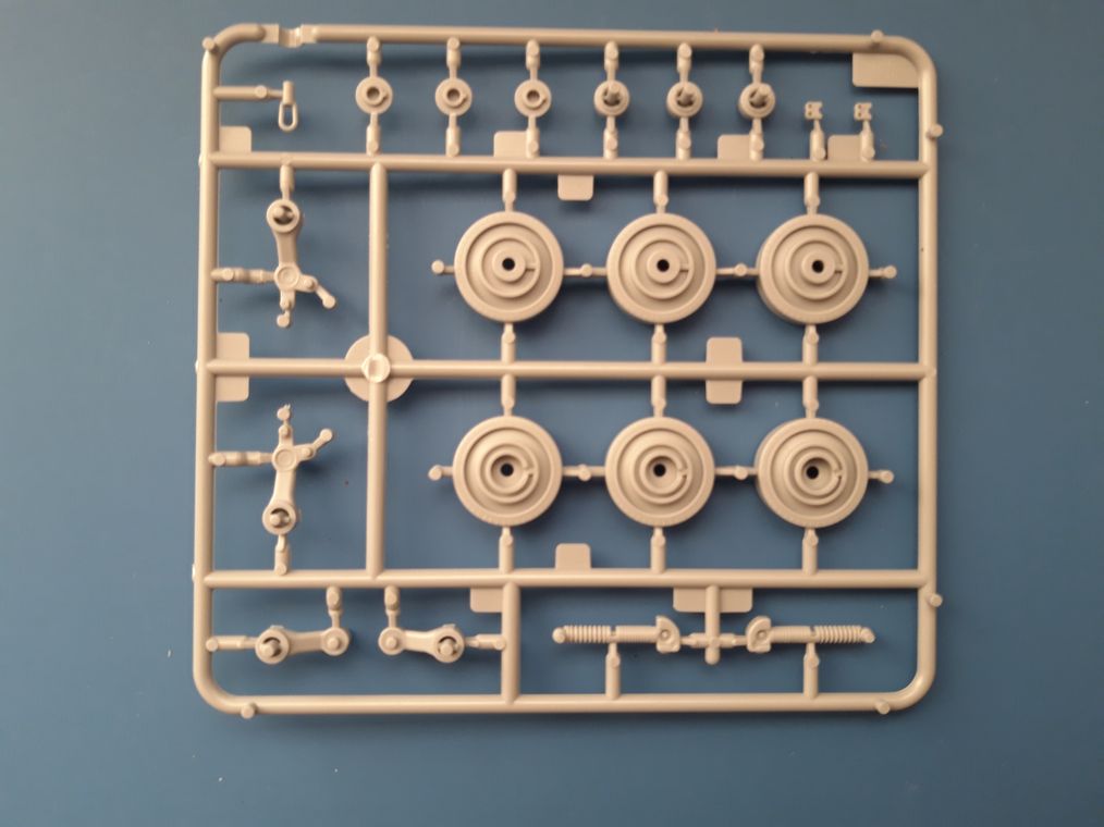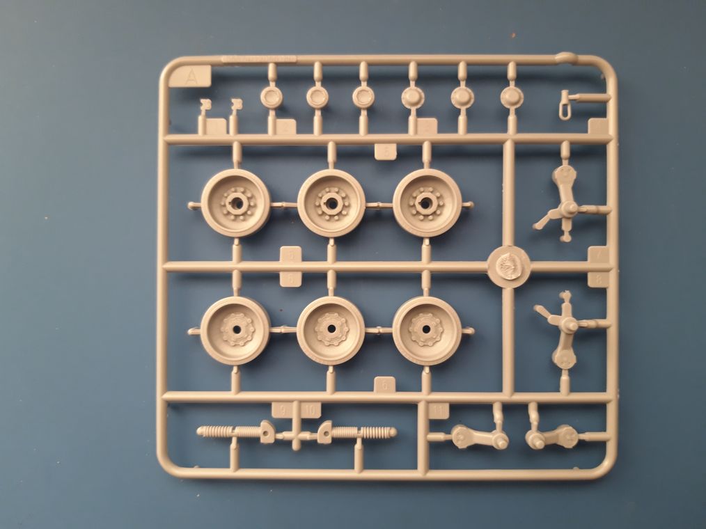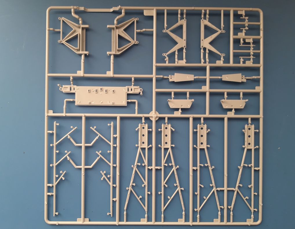 980 деталей,стандартный серый пластик(при обработке фото цвет пластика местами уходит в желтый)все детали отлиты очень качественно, неплохая детализация