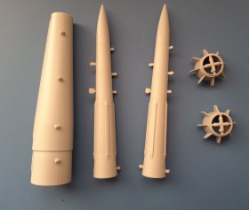 Контейнеры пусковой установки и самих ракет,также верх и низ корпуса даны цельными деталями