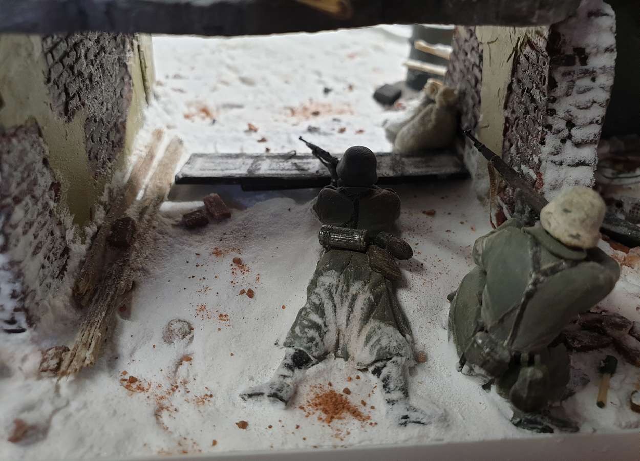 Может, сначала на пятую точку упал, а потом уж занял боевую позицию ? ) Кстати, изначально немцы на диораму не планировались, в процессе работы нашел их в запасах, с какой-то моей древней "диорамы" и решил задействовать.