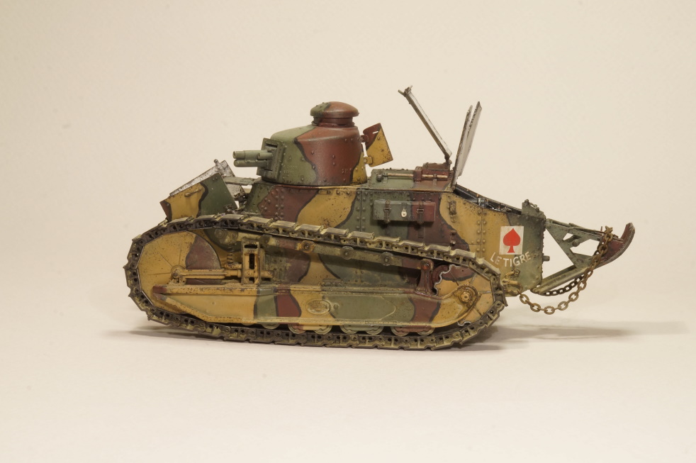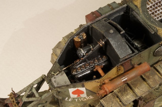 Это еще полбеды, ротный знак масти должен быть черного цвета.Мало того, "тигр" был пулеметным, а не пушечным танком. Но это к Менгу вопросы. Удивил средний лист капота двигателя, висящий в воздухе.