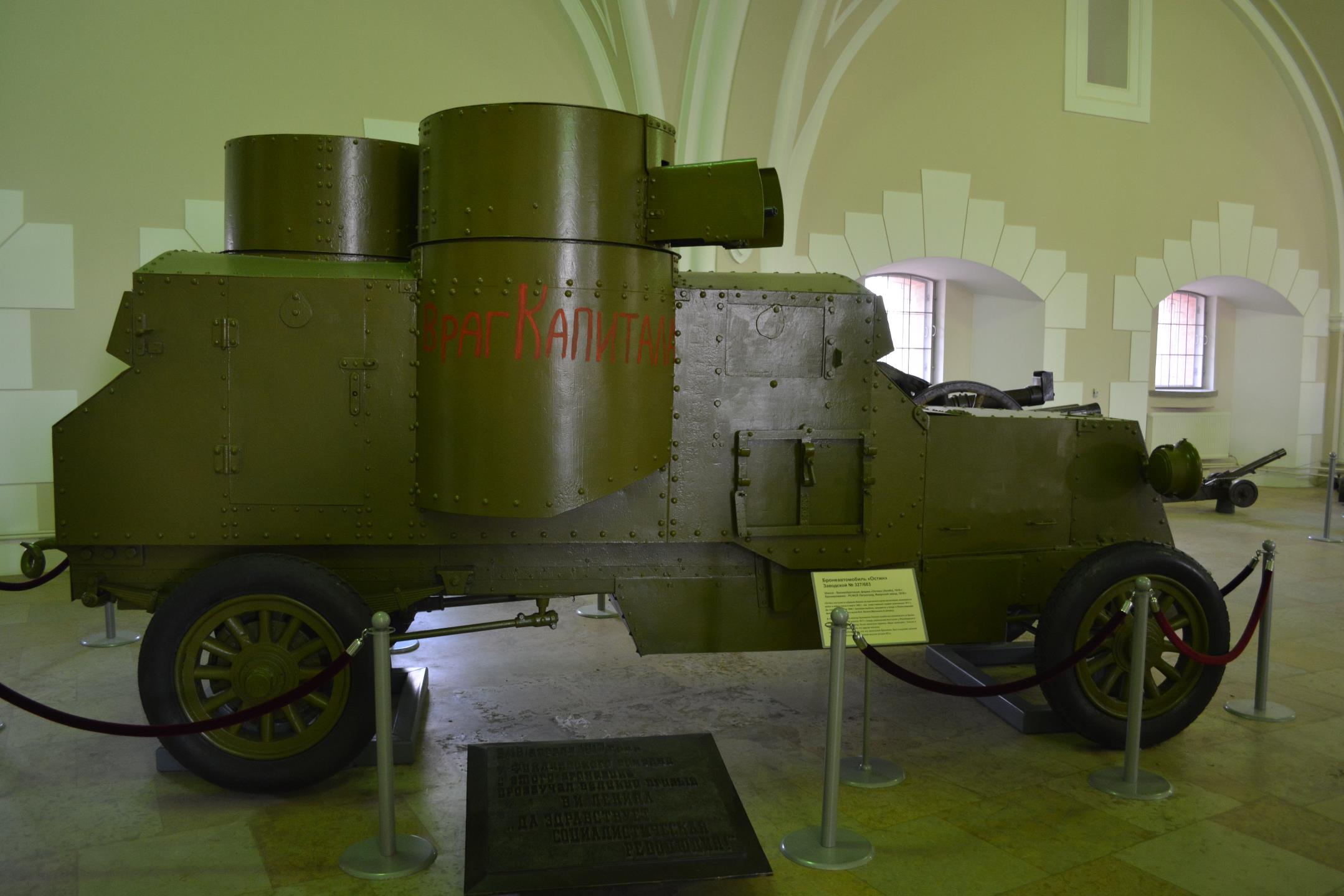 Знакомая конструкция. В детстве изучил, склеивая бумажную модель. Лет эдак пятьдесят назад. А Ленин то с какого броневика выступал, если этот 1918 года выпуска?